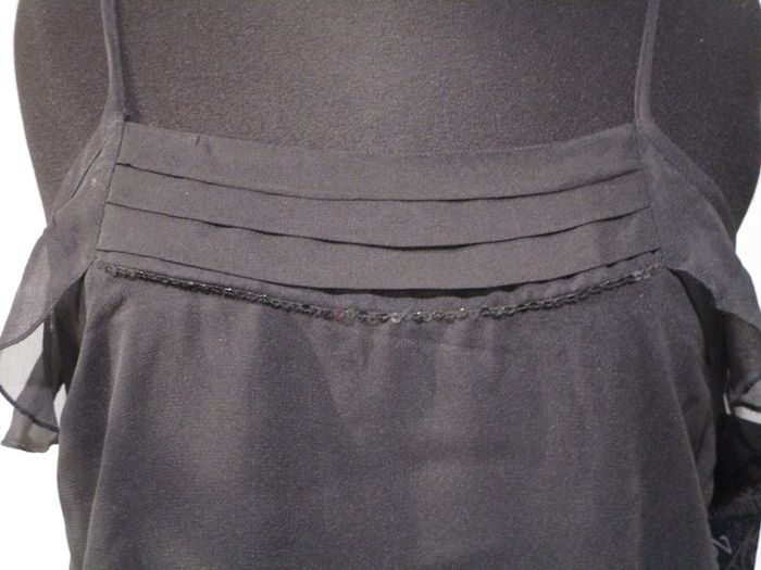 Joli top bretelles noir en voile de marque Jac Jac taille 2 soit 40. Fantaisies ton sur ton ornées de sequins noirs dans le bas. Doublé. Bretelles réglables 100% polyester Doublure 100% viscose Largeur poitrine : 46 cm Longueur : 59 cm NEUF avec étiquette Prix boutique : 60 euros La jupe assortie en taille 38 est également disponible dans mon dressing. #mamanbrade59femme40