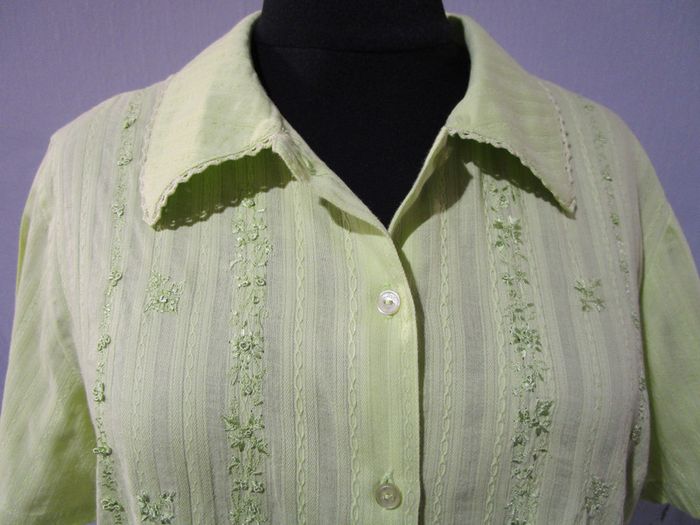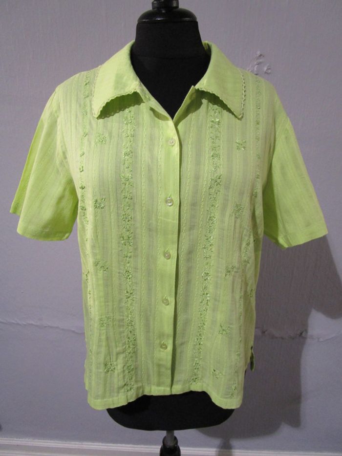 Chemisier vert anis avec broderies ton sur ton de marque Jac Jac taille 40. 100% coton. NEUF avec étiquette Maison non fumeur et sans animaux. Beaucoup d’autres vêtements neufs avec étiquette en taille 40 sont disponibles dans mon dressing #mamanbrade59femme40