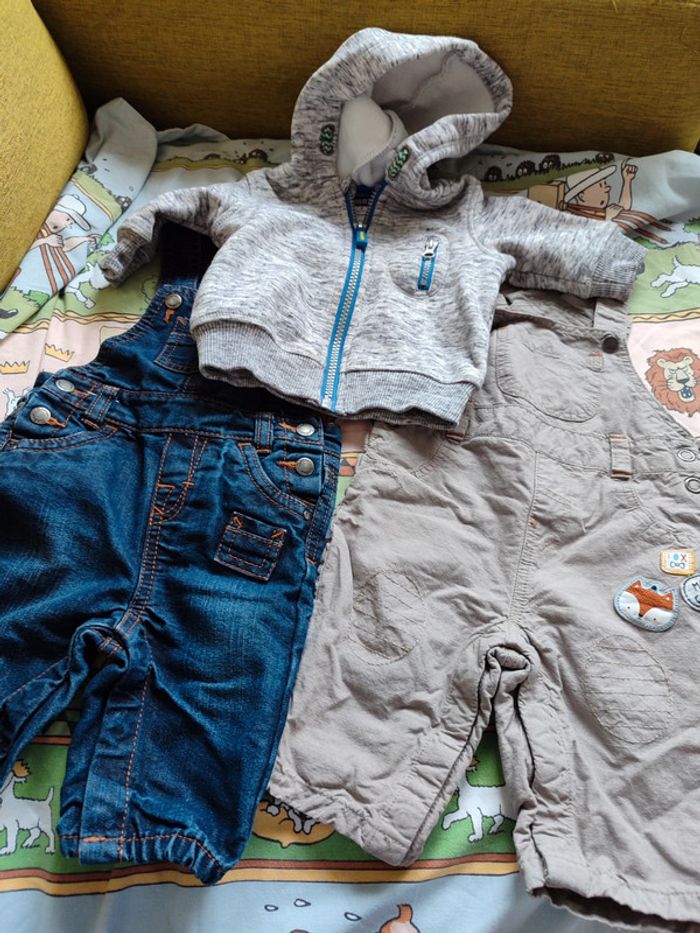 Tout en tbe 😊 1 salopette renard orchestra tbe 1 salopette jean en tbe Un gilet liberto en tbe ..doux intérieur