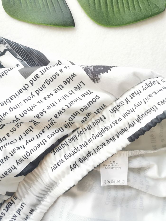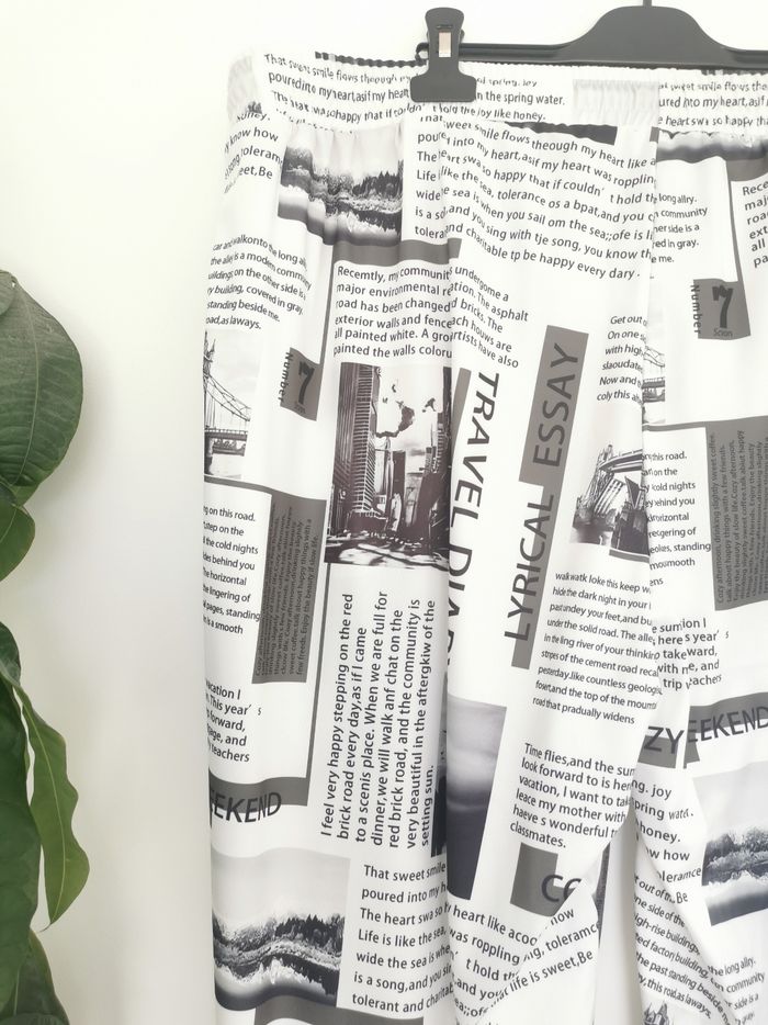 🧔 ÉTAT DE L'ARTICLE: 10/10 ✅️ Sans étiquette, jamais porté Pantalon de survêtement 🧔 newspaper 📰 Taille 5XL • Matière: 100% polyester • Tissu léger et fin • Taille elastiquée avec cordons de serrage ⚪ • 2 poches latérales • Bas de jambes resserrés • Imprimé Newspaper 📰 • 📏 Longueur: 112 cm • 📏 Mesure taille à plat: 55 cm étirable Parfait état 👌, jamais porté 🌹