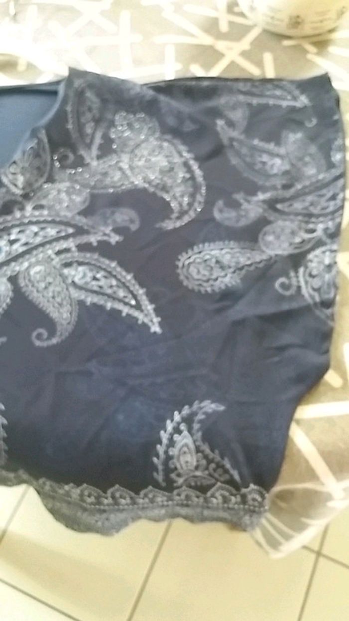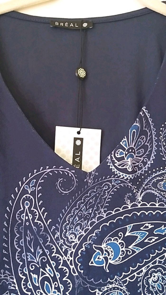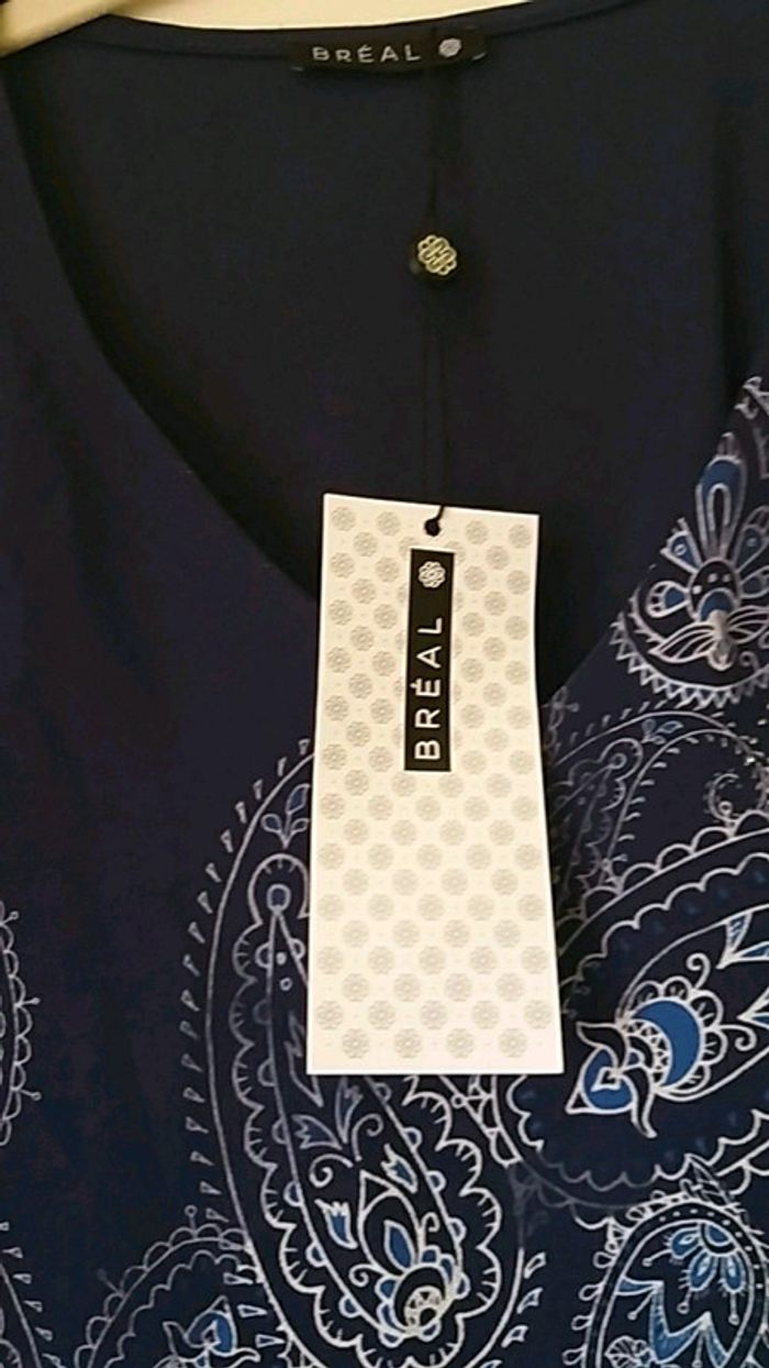 Très beau haut neuf Bréal avec joli imprimé et jolis détails. Style folk avec manches amples. Dos uni. Taille 1