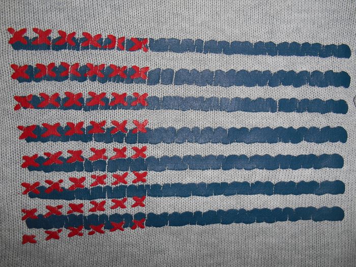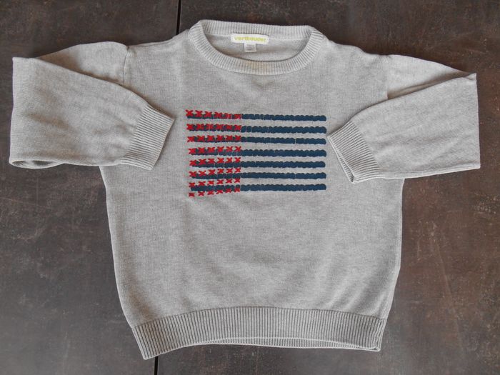 Pull fin gris motif drapeau américain Bon état général, motif un peu craquelé et col un peu jauni 3 ans