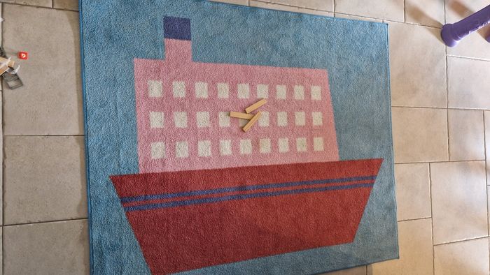 Tapis ikea. Il est épais er douillet. Convient devant le lit ou dans la chambre ou salle de jeux pour jouer dessus.