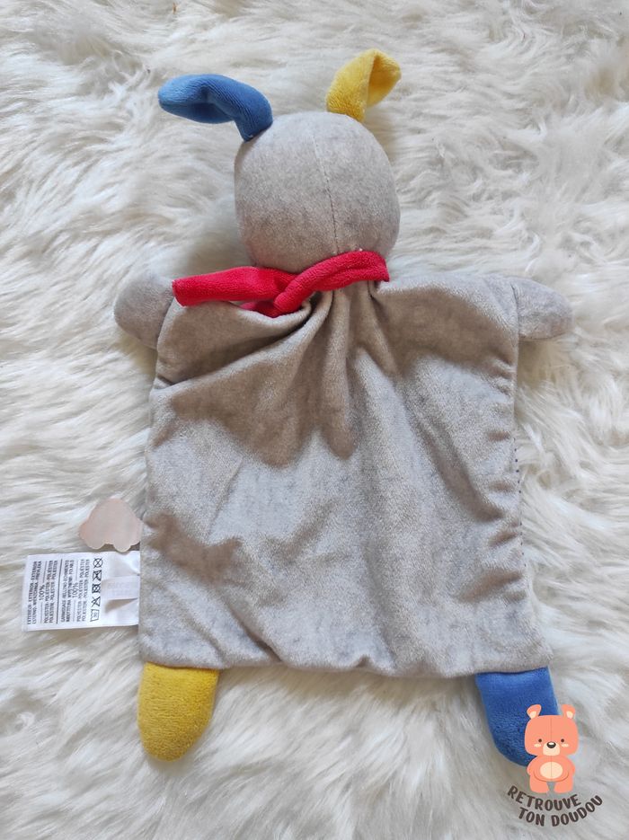 🐶 Doudou Chien Gris rayé bleu, oreilles bleu et jaune, Mots d'Enfants 📏 Dimension : 25 cm environ ✨ Neuf (sans emballage d'origine) 👀 Vous achetez le doudou que vous voyez sur les photos.