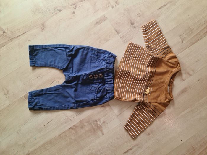 T shirt manche longue et pantalon confortable type chino (taille 3 mois mais trop petit plutôt pour bébé 1 mois)