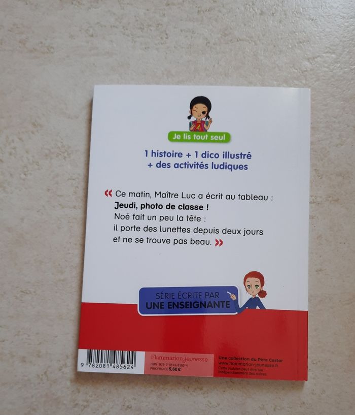 Livre je suis en CE1 la photo de classe. "Ce matin Maître Luc a écrit au tableau: jeudi, photo de classe! Noé fait un peu la tête: il porte des lunettes depuis deux jours et ne se trouve pas beau." Neuf, jamais lu.