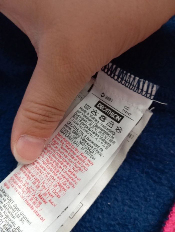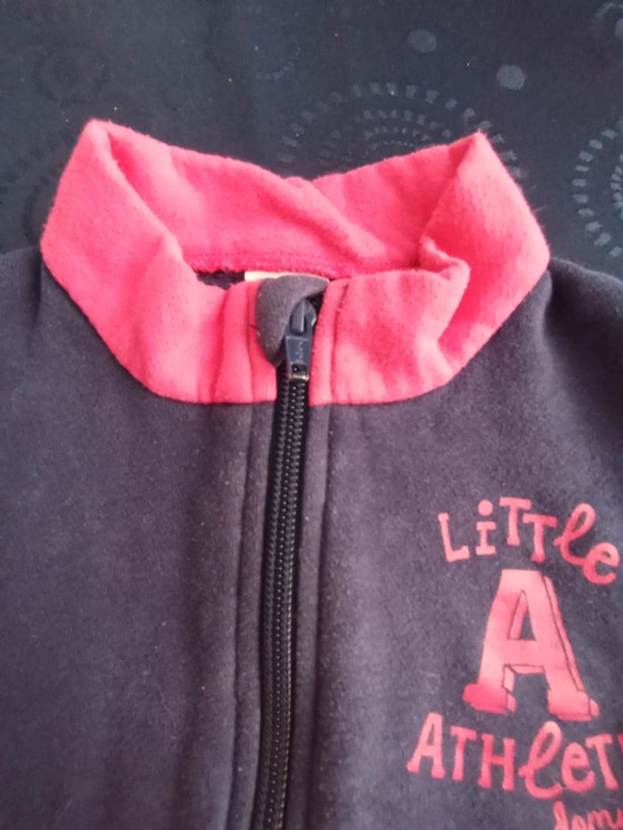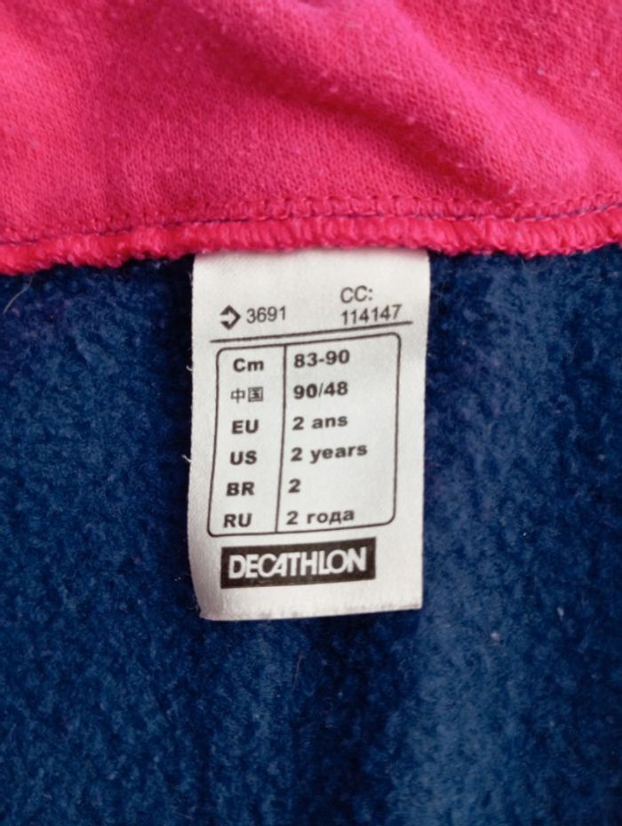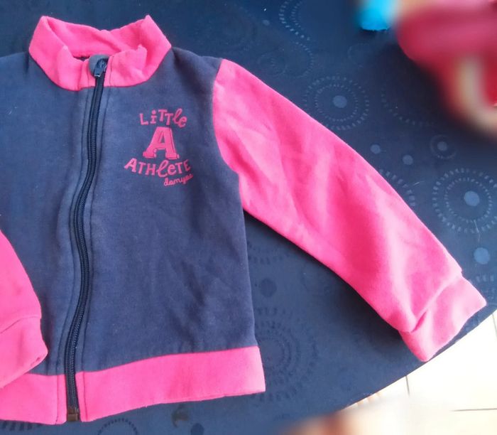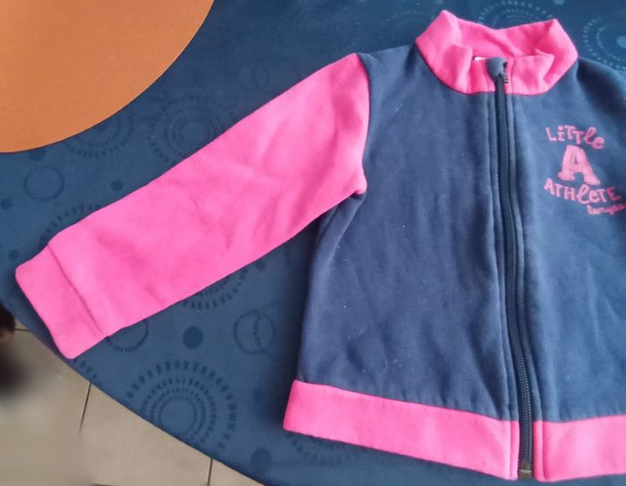 Gilet de sport intérieur en velours Bleu et rose avec inscription Marque Decathlon taille 2 ans Très bon état