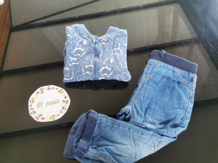 Ensemble bébé garçon 18mois composé d'une Veste motifs dinausaures sergent major en tres bon etat et d'un pantalon pat et ripaton en bon etat general.