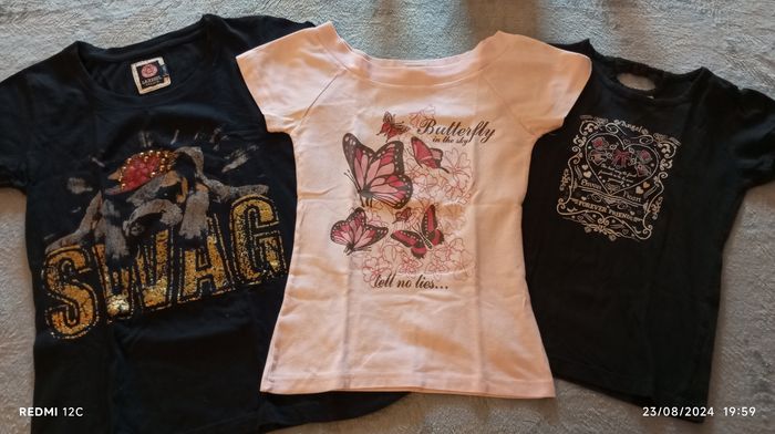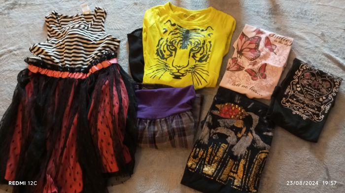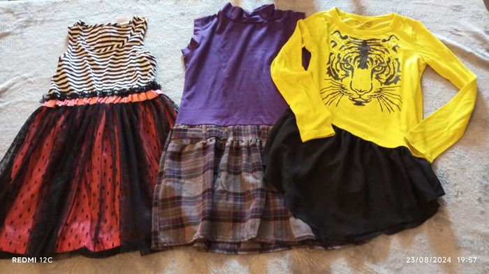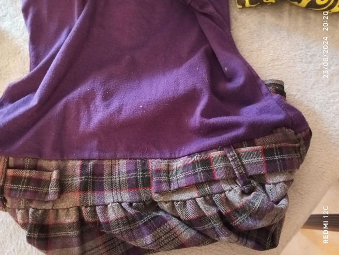 La robe rose à froufrou ne présente aucun défaut et en train de bon état la robe violette est offerte elle a plusieurs défauts