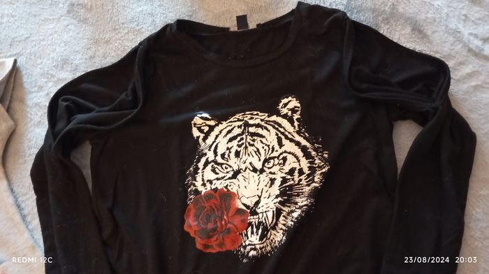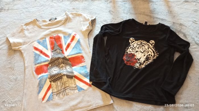 Lot d'habits de 5 pièces une veste de jogging 2 t-shirt 1 anglais et un tigre ouvert aux épaules 2 pantalons dont le jogging est tout neuf et n'a jamais été porté