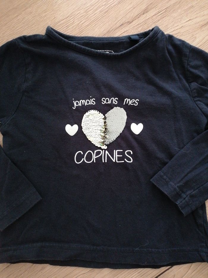 Tee-shirt bleu marine manches longues. Le motif cœur est réversible