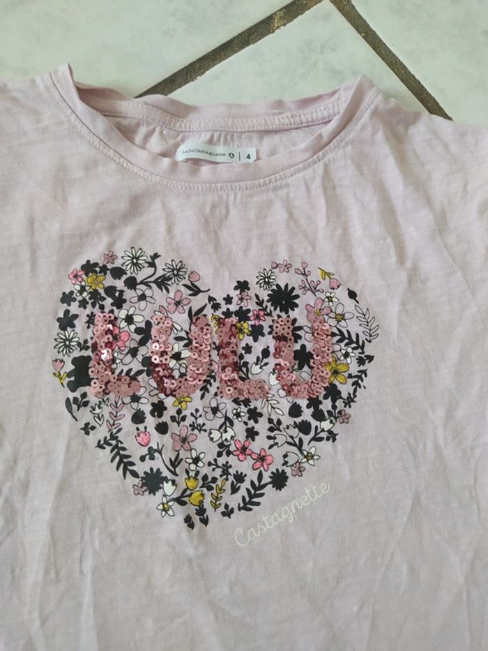Vends ce tee shirt manches courtes, marque Lulu Castagnette, en très bon état. Taille 4 ans. Ce porte large.