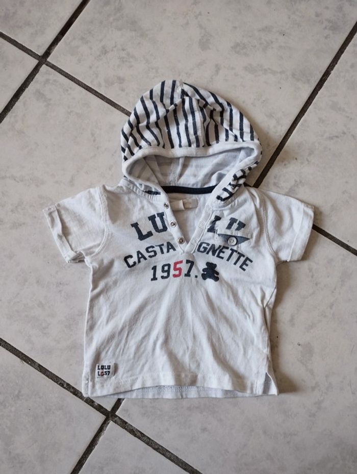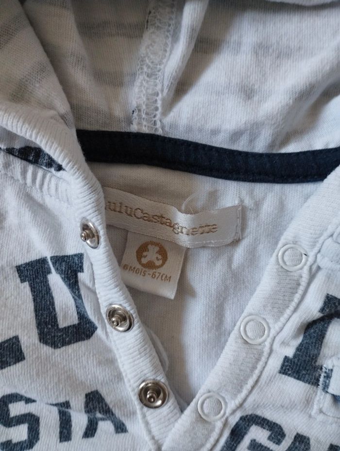 Vends ce tee-shirt manches courtes taille 6 mois, en très bon état. Marque Lulu castagnette.