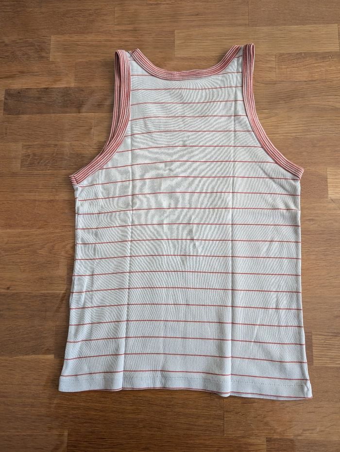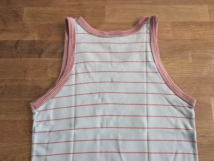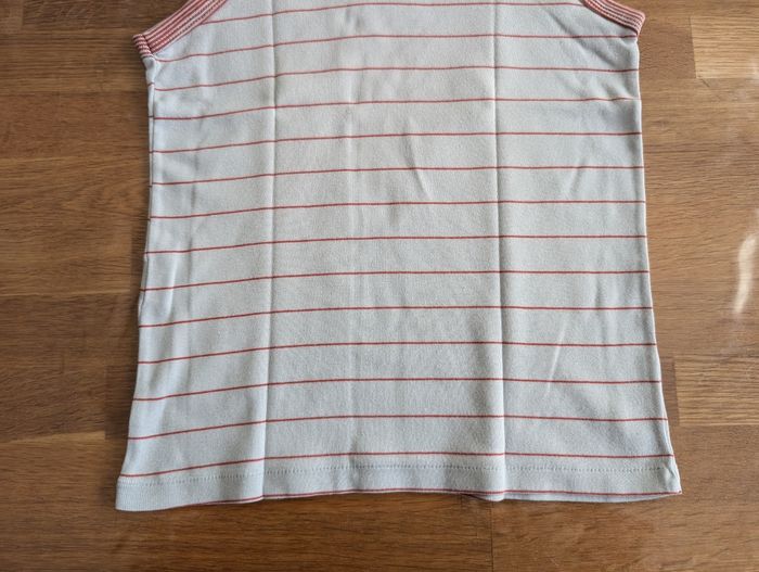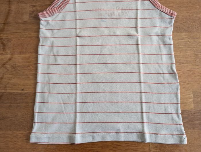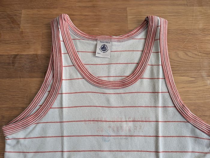 Maillot de corps garçon 10 ans Petit bateau Etat satisfaisant, beaucoup porté, couleur passée, blanc et rouge, coton, 3 tâches sur le devant.