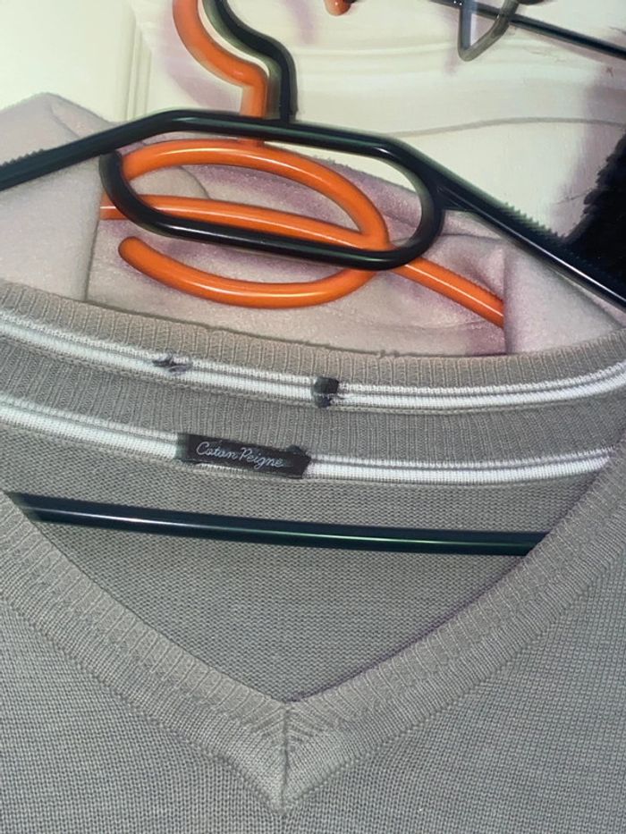 Pull col V homme Coton peigne taille XXL COULEUR CRÈME BEIGE