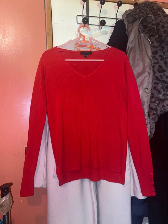 Pull col V rouge matière fine idéale pour la saison taille 40 de chez atmosphère