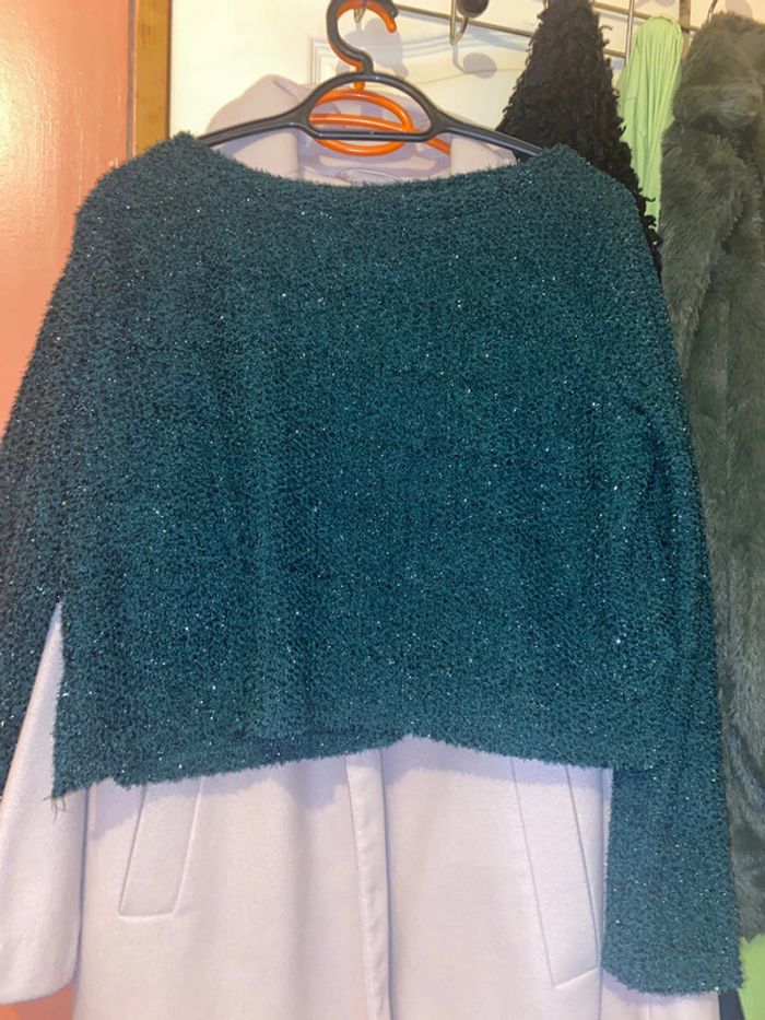 Pull vert à paillettes sans aucune étiquette (taille S-M)