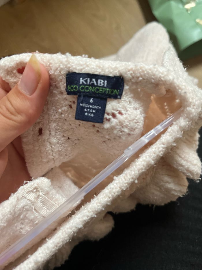 Robe en laine douce kiabi taille 6 mois mais matière très extensible porté jusqu’à un très bon 9 mois En très bon état