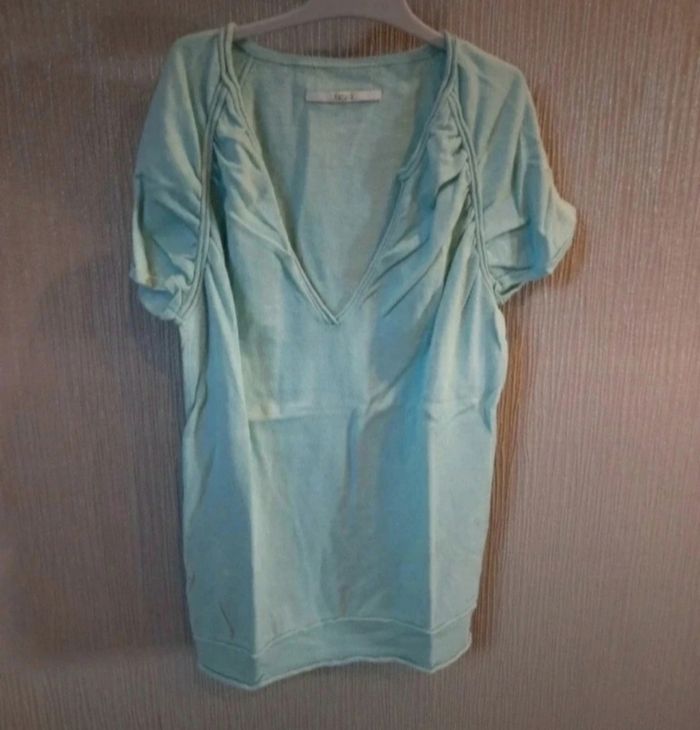 Tee shirt vert d eau Col v