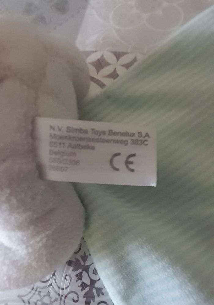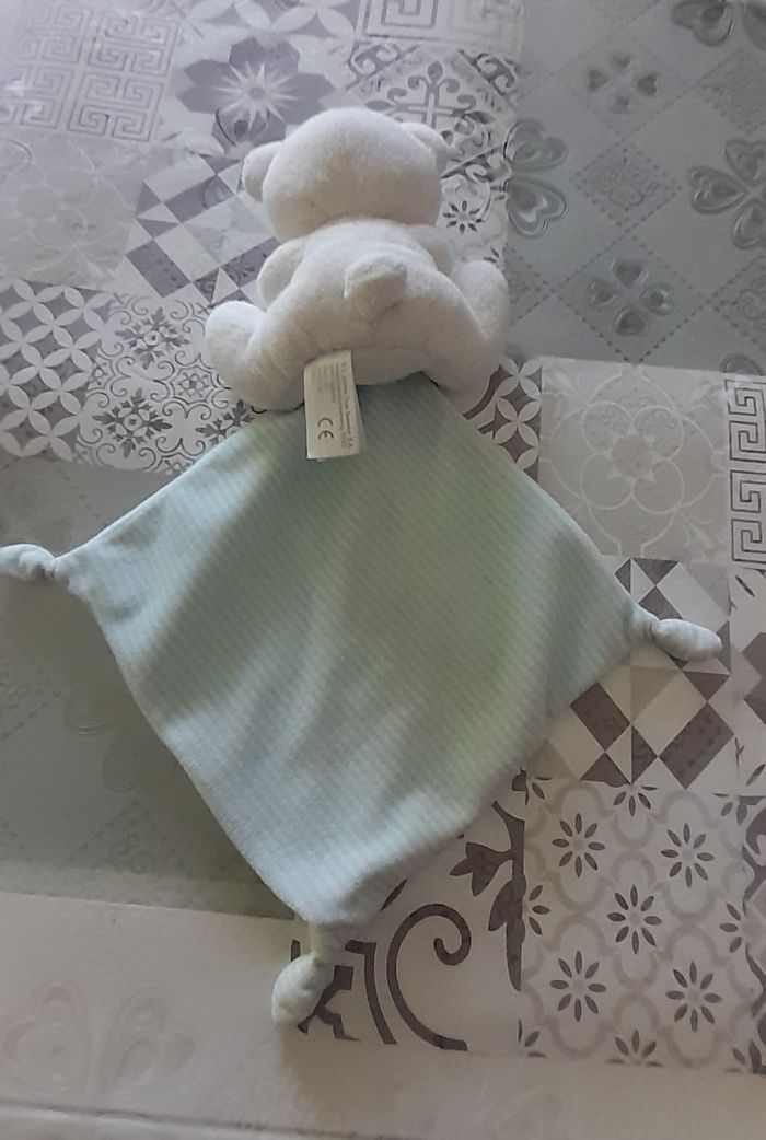 Doudou ours/ourson Simba toys mouchoir bleu ciel avec ours polaire devant, rayé au dos, jamais servi, en velours tout doux