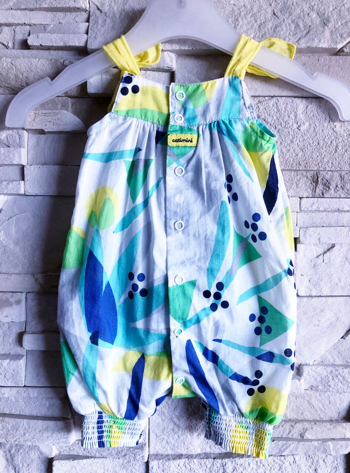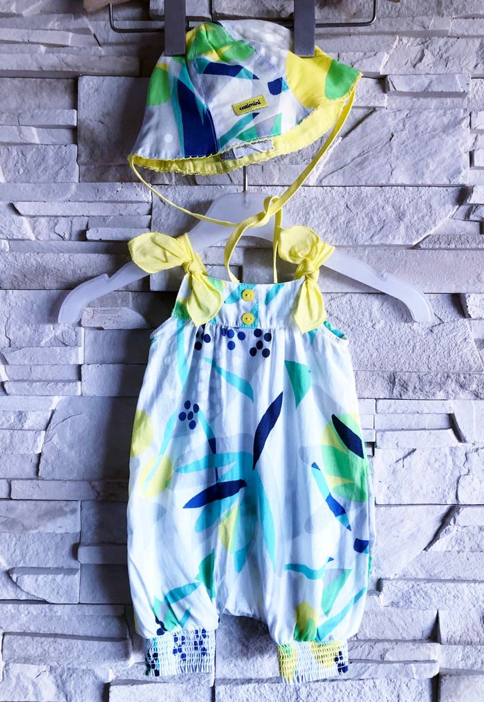 MARQUE : CATIMINI... ÉTAT : NEUF AVEC & SANS ÉTIQUETTES !!! TAILLE : 1 MOIS OU STATURE 53 CM TAILLE CHAPEAU : 39 CM COLORIS : MULTICOLORE COMPOSITION : 100% COTON MOTIF : FANTAISIE PARTICULARITÉS : - Chapeau Doublé (Doublure Jaune) avec Liseré Guipure - Smocks en Finalité des Jambes - Petits Nœuds aux Épaules - Boutons Jaunes Nacrés sur l’Encolure - Contraste de Teintes Lumineuses