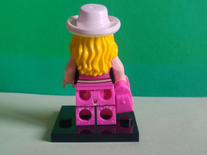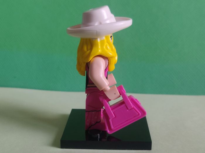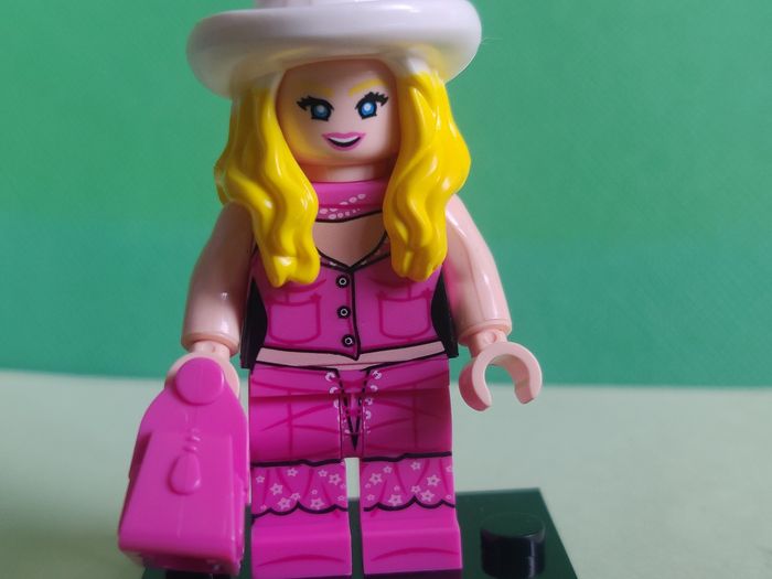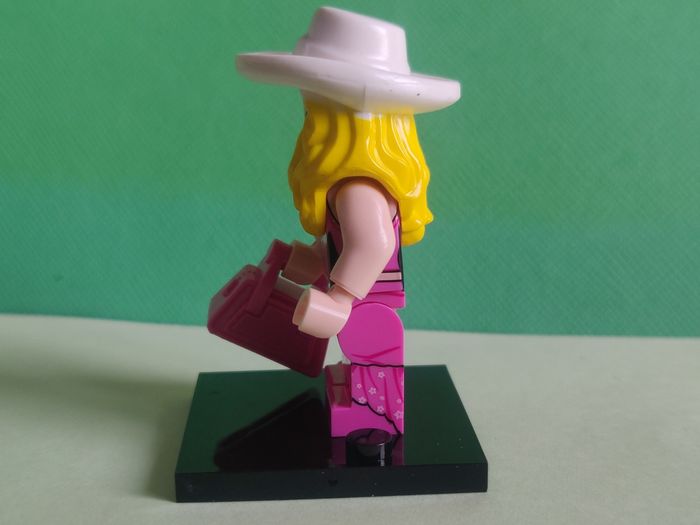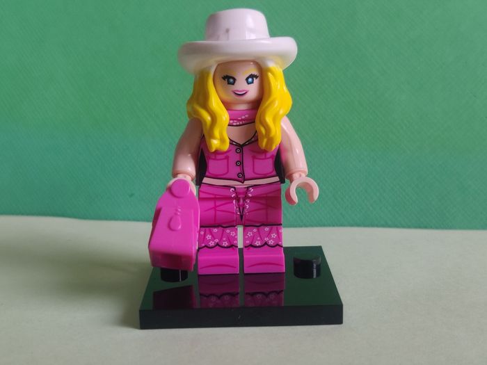 Barbie + sac + socle - Figurine Compatible Il s'agit d'une figurine compatible Il ne s'agit pas d'une figurine Lego, elle s'y adapte et peut être mise sur les tenons. En parfait état, avec socle N'a jamais été exposée ou jouée. Etat neuf Envoi soigné