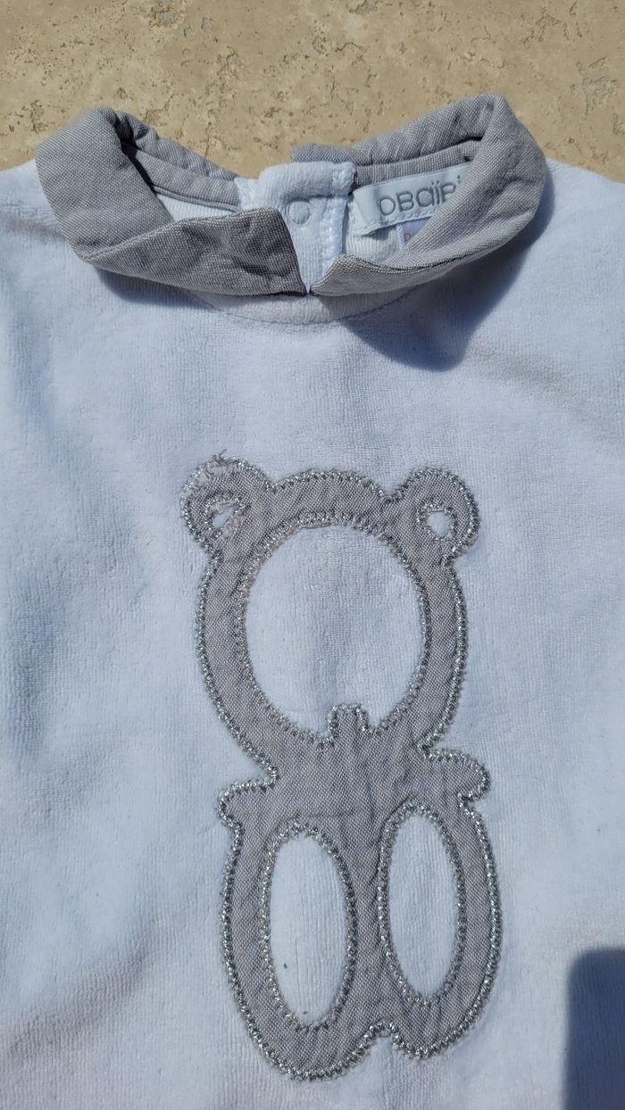 Pyjama velour blanc mixte 1mois Obaïbi. Petite déchirure sur une oreille.