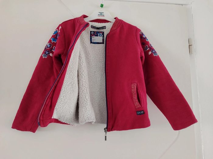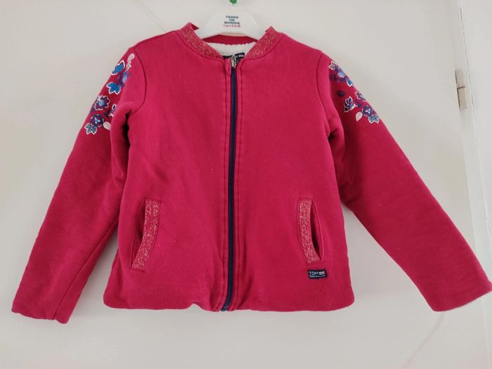 Gilet doublé moumoute Fermeture zippée, 2 poches côtés. Poches et col en maille élastique avec fils dorés. Composition : 100% coton Gilet en très bon état, mais noté bon état car beaucoup porté. 🚭 Maison non fumeur. N' hésitez pas à visiter mon dressing, il est listé par # dans mon descriptif. #nerimafille8ans #terredemarins