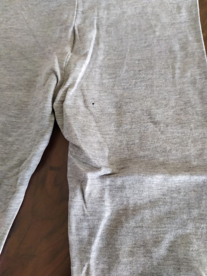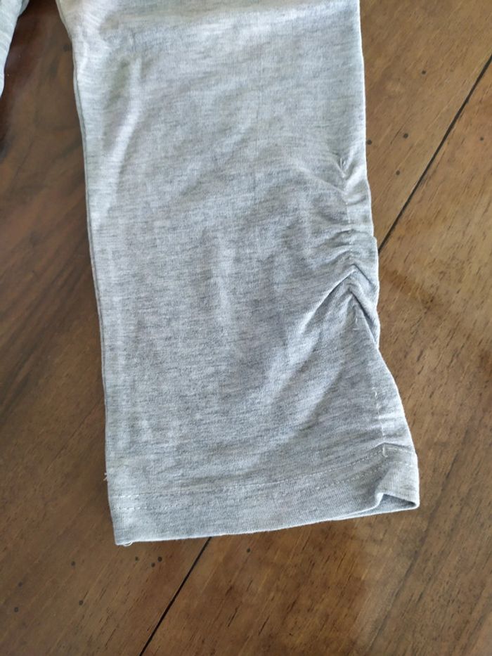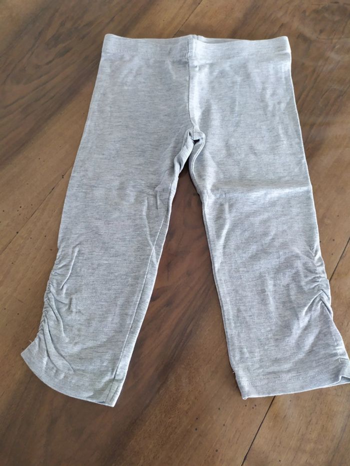 Legging de longueur 3/4 gris chiné. Froncé en bas des jambes Composition : 91% coton, 5% viscose, 4% elasthanne. ⚠️ un petit trou sous la fesse droite (cf photo📷 3) Legging en bon état autrement. #nerimafille7ans #tissaia