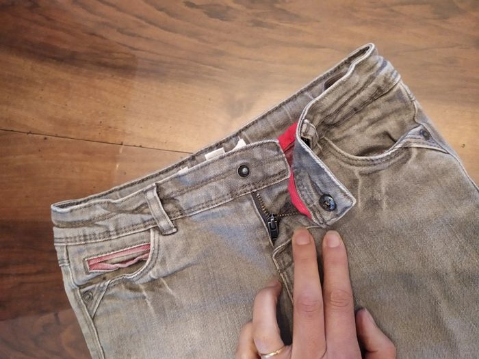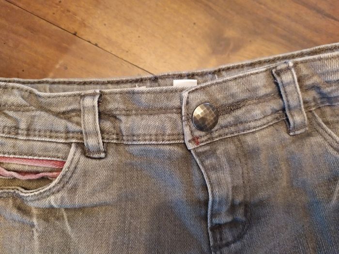 Joli short en jean gris, intérieur rose. Petite fermeture zippée + 1 bouton pression. Taille réglable par élastique à l'intérieur. Short en très bon état 🚭 Maison non fumeur #nerimafille6ans #okaidi