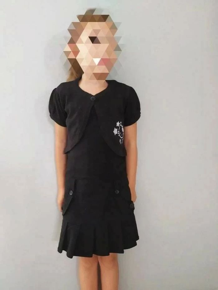 Jolie robe noire. Ouverture zippée dans le dos. Sous passants pour ceinture. Deux petites poches devant. Bas de la partie jupe plissé. Vendue sans le Boléro ( qui est aussi dans le dressing 😉). Marque : Vynil Fraise Taille : 6 ans. Composition : 73% viscose, 23% polyamides, 4% elasthanne. Robe en excellent état, comme neuve. 🚭 Maison non fumeur #nerimafille6ans #vynilfraise