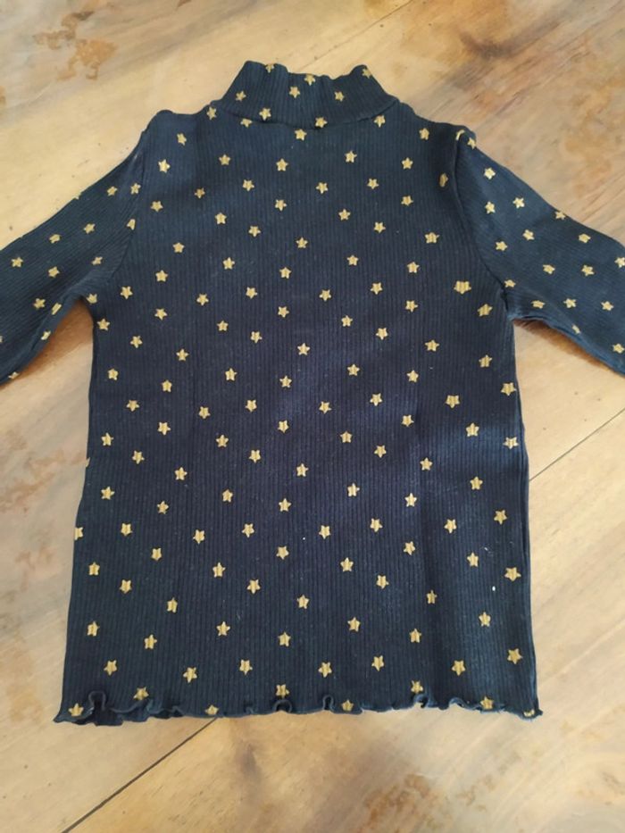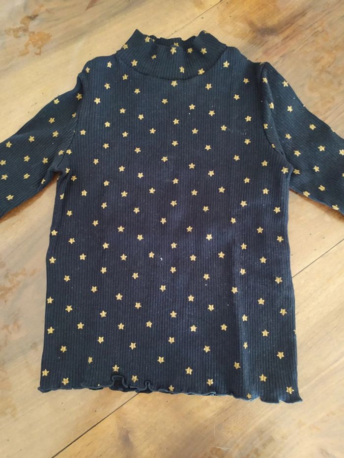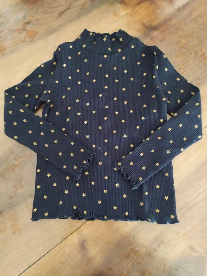 Joli t.shirt à col montant, tissus côtelé bleu marine avec des petites étoiles dorées. Bas et bout des manches ondulés. Marque Kiabi Taille 6 ans Composition : 95% coton 5% élasthanne T.shirt en excellent état ( peu porté). 🚭 Maison non fumeur #nerimafille6ans #kiabi