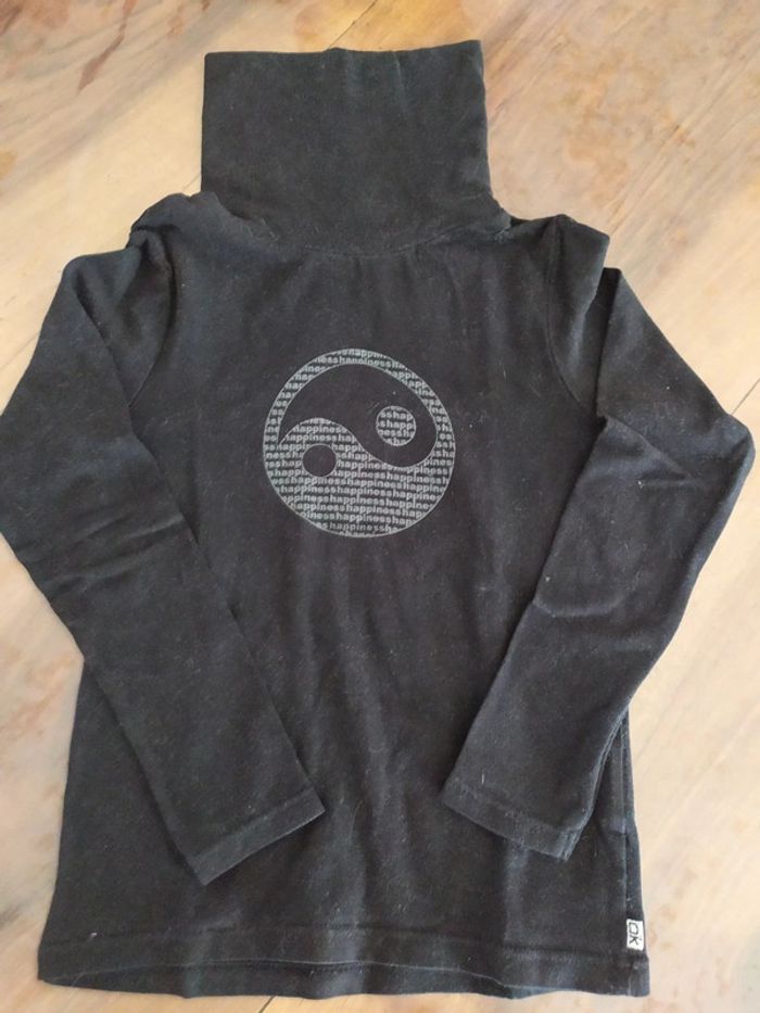 Joli t.shirt à col roulé noir motif gris Ying & Yang. Marque okaïdi Taille 6 ans Composition : 95% coton 5% élasthanne. Sous pull en très bon état. 🚭 Maison non fumeur. #nerimafille6ans #okaidi