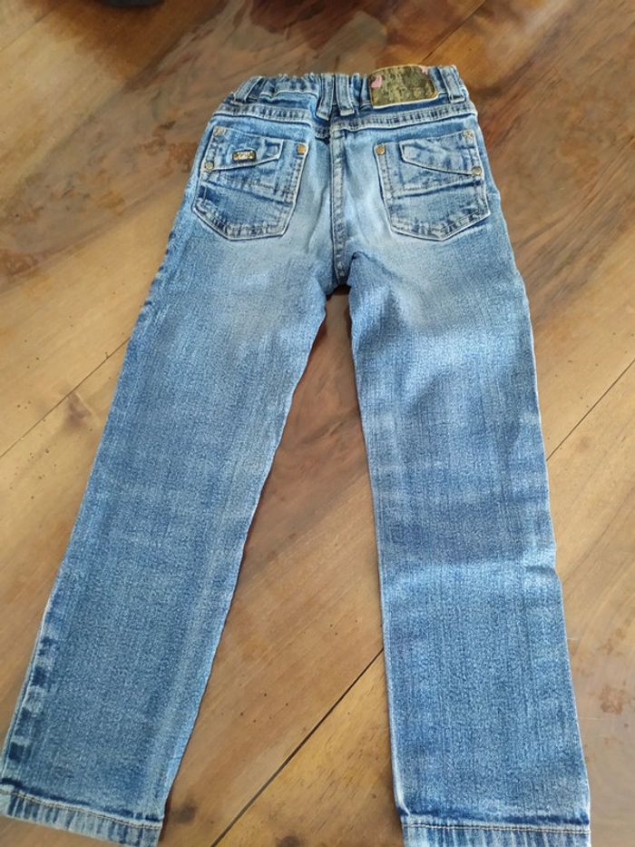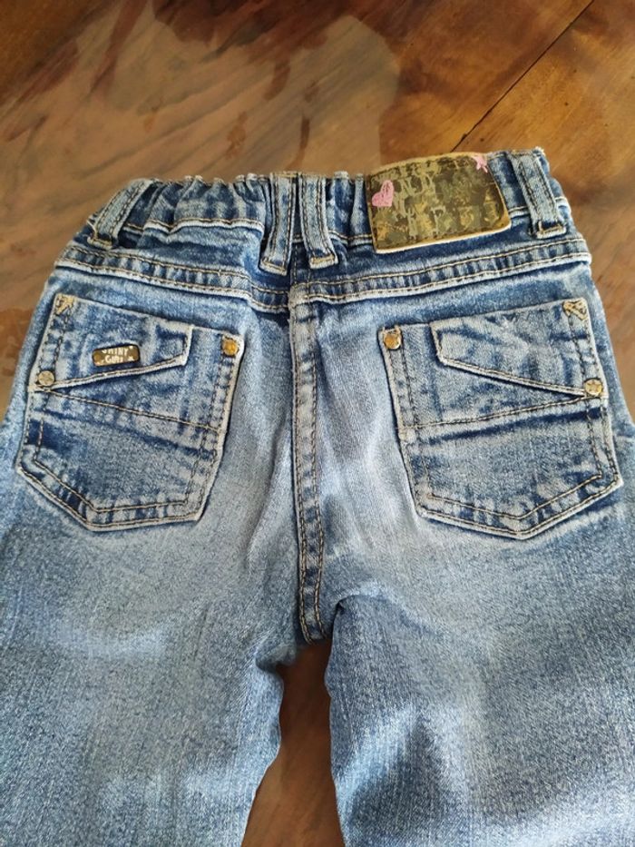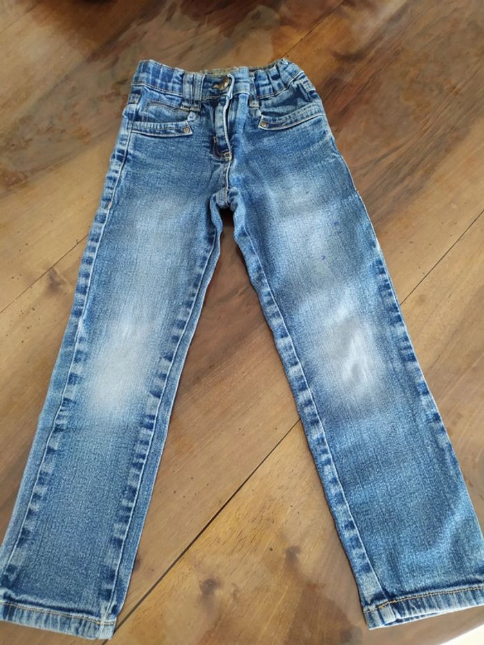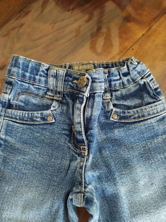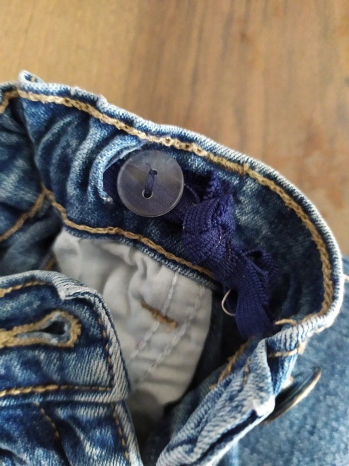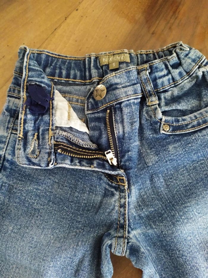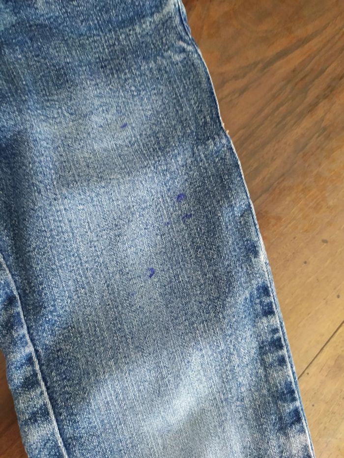 Jean bleu clair. Fermeture zippée + un bouton + sous passants pour ceinture. Taille réglable. 2 poches devant + 2 poches derrière. Marque In Extenso Taille 5 ans. Composition : 98% coton 2% élasthanne. 🚫 petites tâches sur la jambe gauche ( cf dernière photo). Sinon jean en très bon état. 🚭 Maison non fumeurs. #nerimafille5ans #inextenso