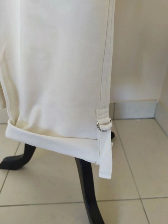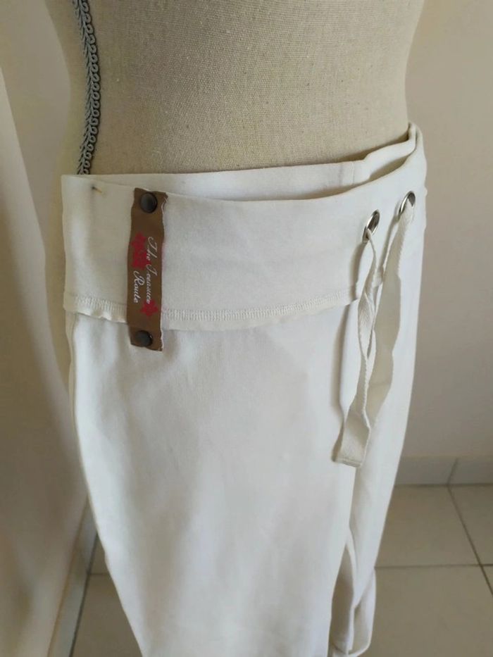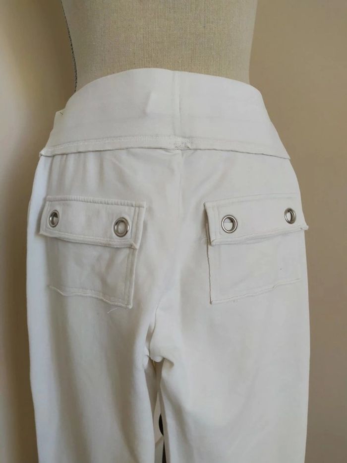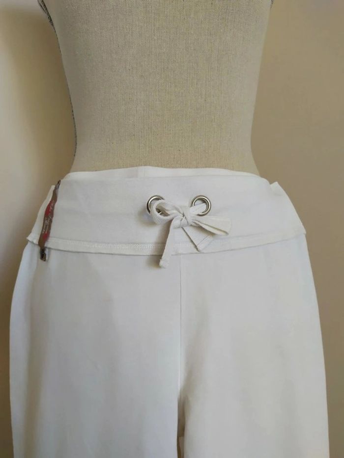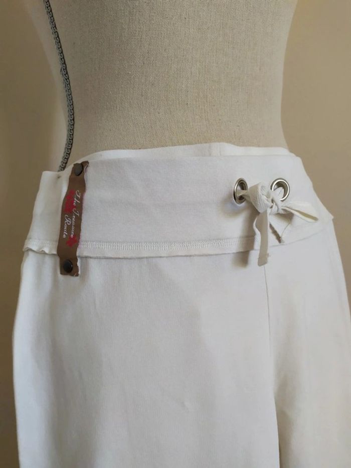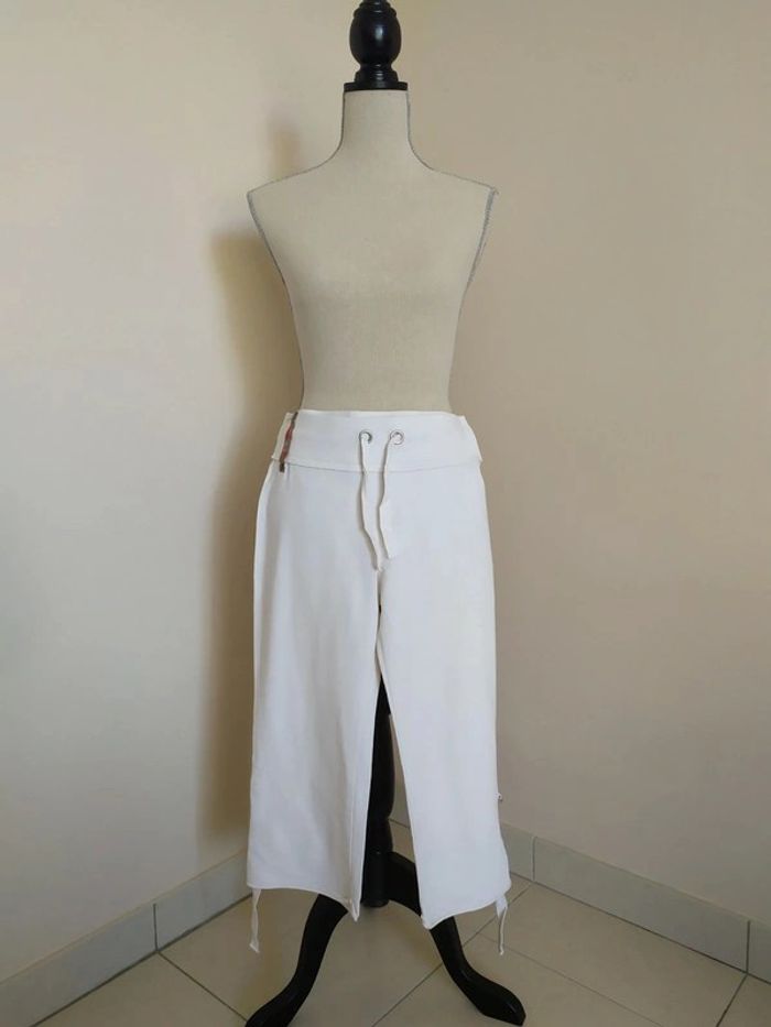 Joli pantacourt blanc style jogging. Taille élastique, avec liens de serrage devant. Longueur des jambes réglable. Deux poches derrière. Taille : S Marque : Tex Composition : 96% coton 4% elasthanne Pantacourt en très bon état (peu porté). #nerimafemme36 #tex