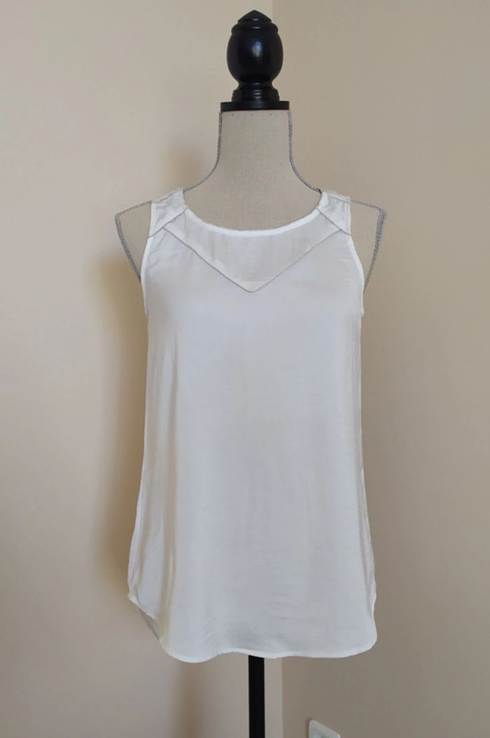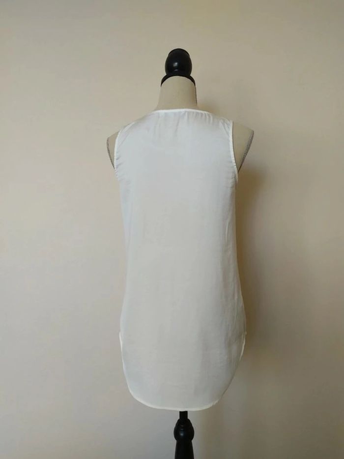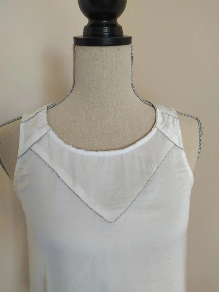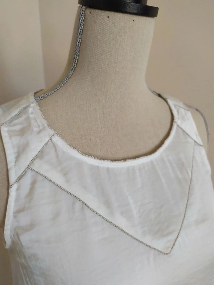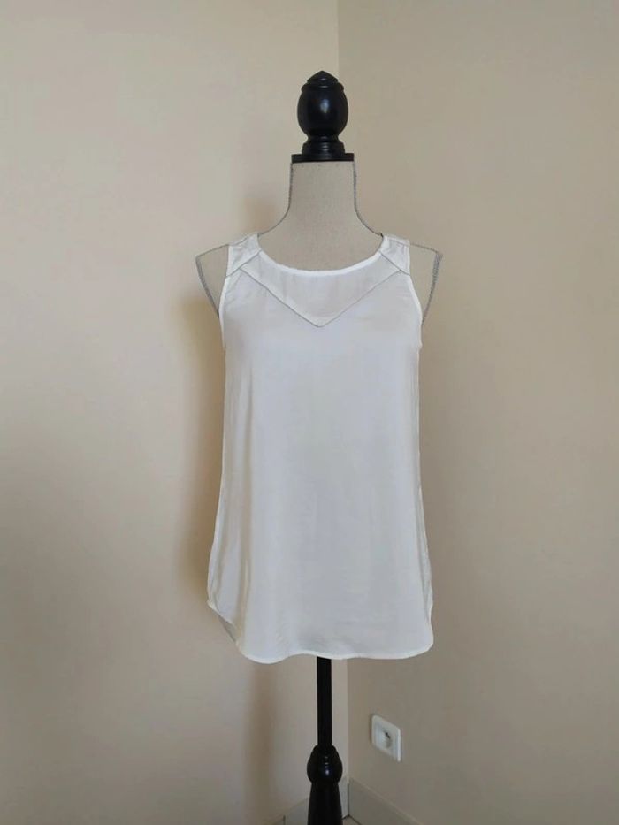 Joli débardeur de couleur blanc cassé. Léger et fluide. Fantaisie brillante au niveau du col, épaules et poitrine. Plus long sur l'arrière. Légèrement transparent au porté. Longueur devant :64 cm Longueur dos : 71 cm Taille : 36 Marque : Promod Composition : 100% polyester Débardeur comme neuf, très peu porté. #nerimafemme36 #promod