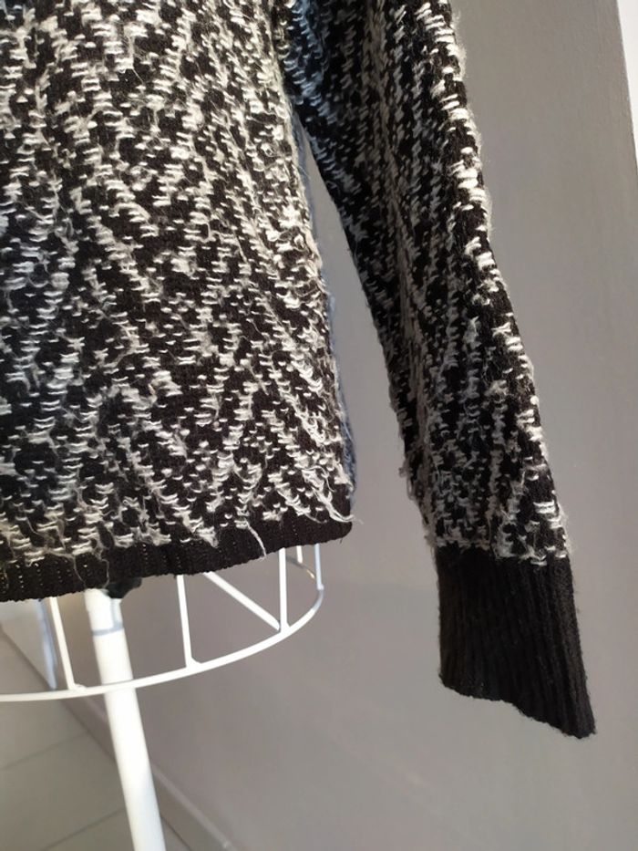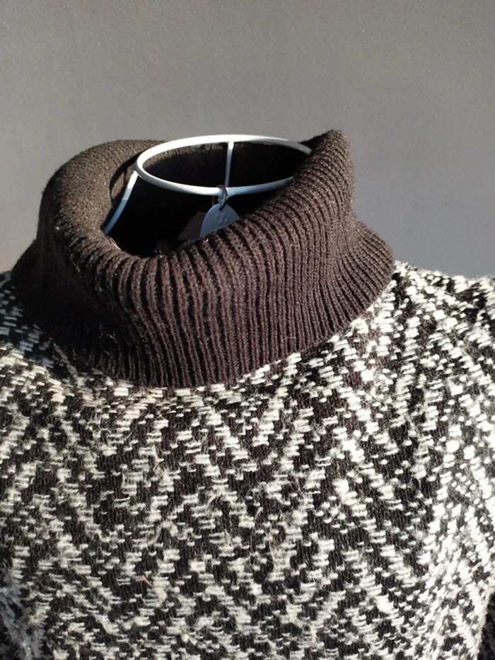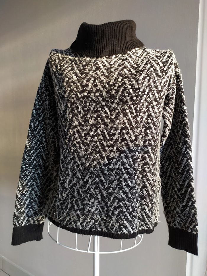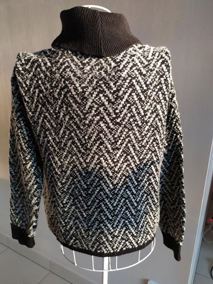 Pull à col roulé noir et blanc. Le pull n'est pas très épais ( pas très chaud 😉). Taille 34 Marque :Anna Field Composition : 97% acrylique 3% polyamide Pull marqué en bon état car la couleur blanche à tendance à faire des bouloches, sinon il est en très bon état 🤗. #nerimafemme34 #annafield