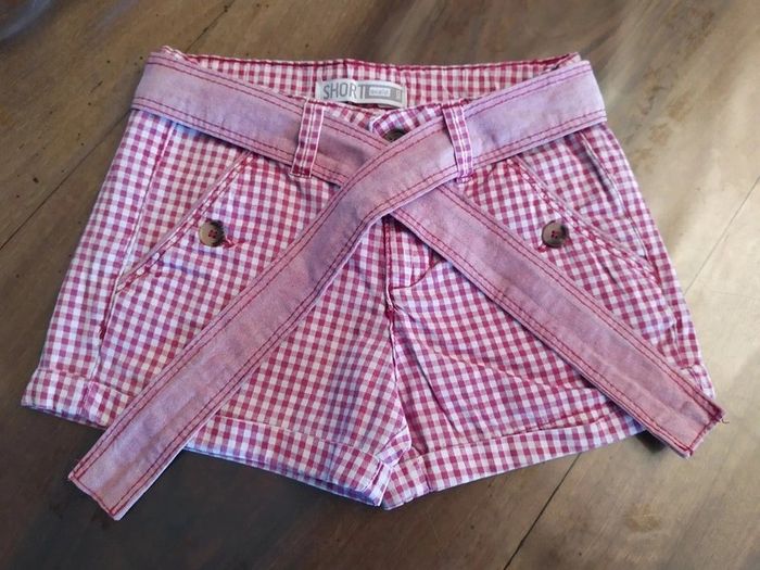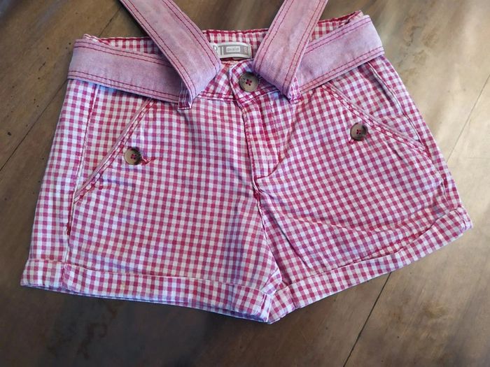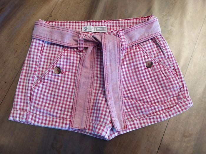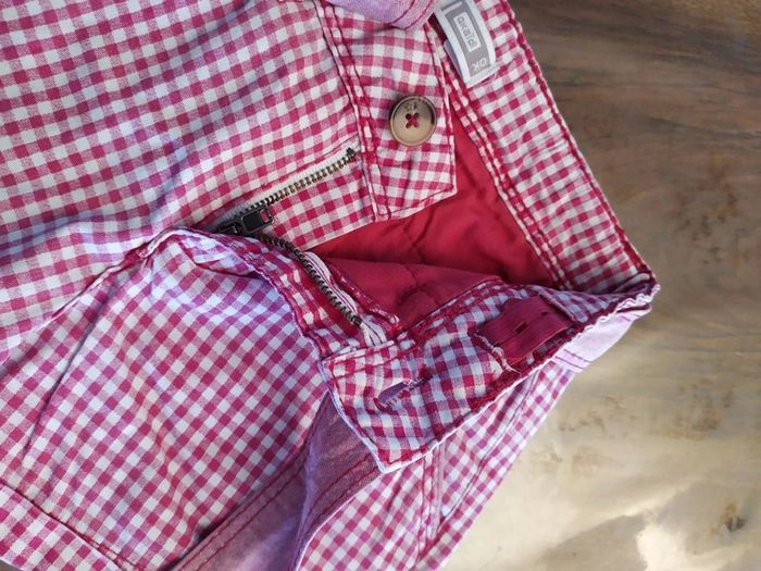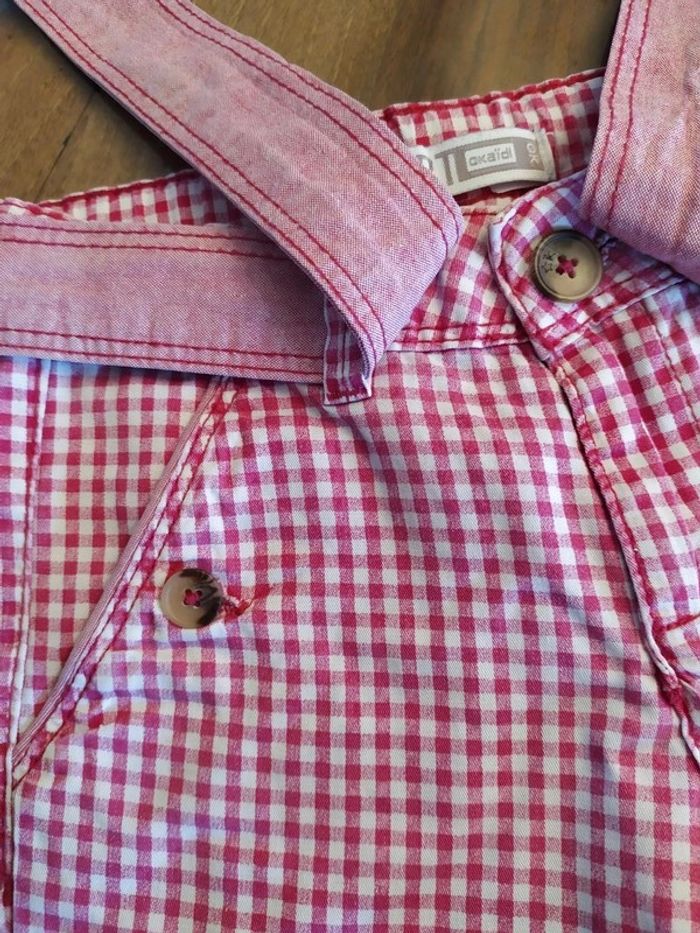 Joli ensemble 2 pièces, taille 5 ans ✔ T.shirt rose foncé avec motifs fleurit. Bout des manches légèrement resserrées, bas un peu resserré également. Marque : Sergent Major. Composition : 100% coton. T.shirt en excellent état. ✔ Short couleurs vichy rose. Fermeture zippée + un bouton, réglable à l'intérieur. Une ceinture en plus à nouée devant qui est fixée à l'arrière. 2 poches fermées par un bouton ainsi que les 2 poches arrière. Bas des jambes avec un petit revers. 🚫short légèrement decoloré au niveau des fesses. Marque : Okaïdi Composition : 100% coton Short en très bon état. Taille de l'ensemble : 5 ans #nerimafille5ans #sergentmajor #okaidi