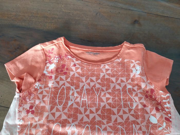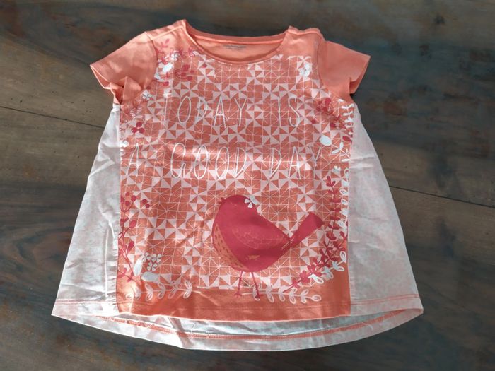 Joli t.shirt orange à manches courtes. Motif oiseau + texte devant. Se porte ample. Taille 5 ans Marque : Vertbaudet Composition : 100% coton T.shirt en excellent état. #nerimafille5ans #vertbaudet