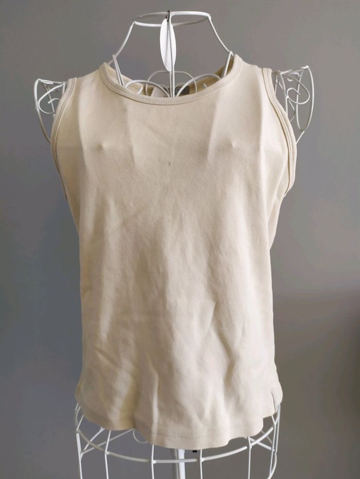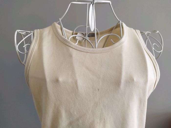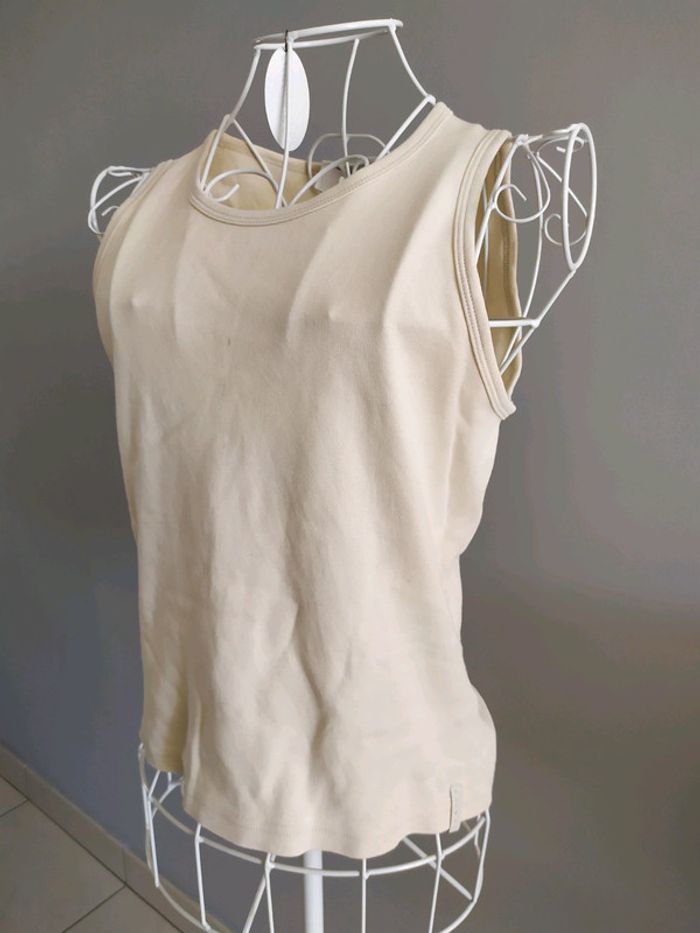 Débardeur beige clair Domyos. Une petite tâche devant ( cf dernière photo📷). Longueur courte ( 49 cm). #nerimafemme36 #decathlon