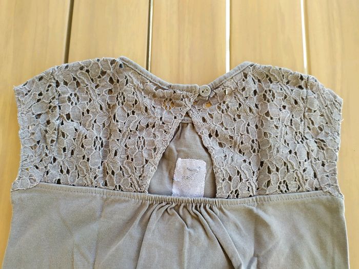 Magnifique t.shirt sans manches gris. Motif papillon blanc & argent. Épaules et haut du dos en tissus brodé. Ouverture dans le dos par un bouton. 2 petits trous devant à côté du motif ( cf dernière photo📷). Taille 5 ans Composition : 100% coton T.shirt en très bon état. #nerimafille5ans #vertbaudet