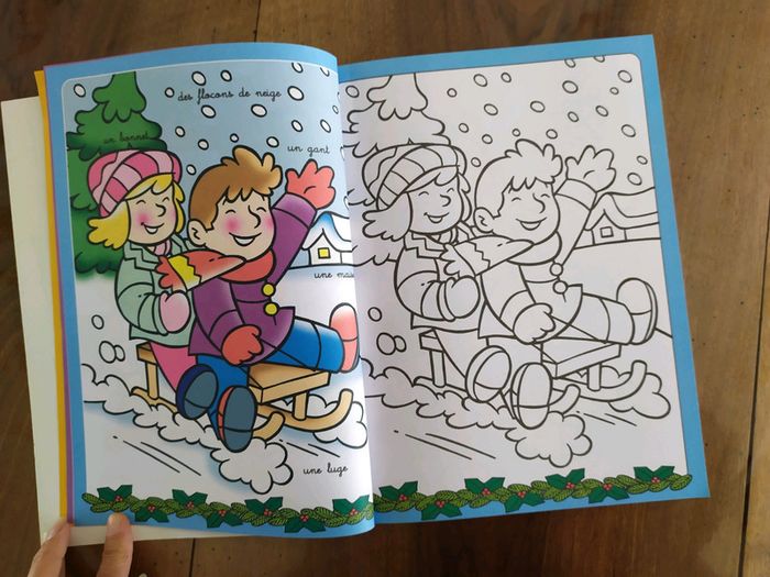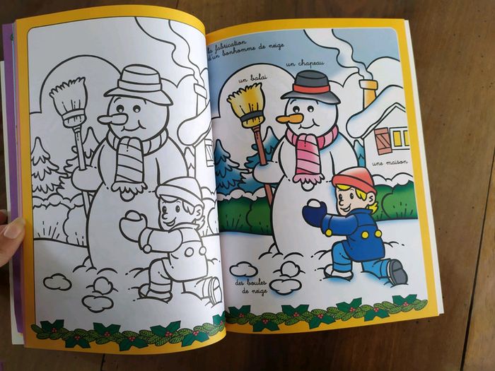 Joli coloriage sur le thème de Noël. Un modèle proposé avec quelques mots de vocabulaire pour chaque coloriage à faire. Mon enfant avait fait les 3 premiers que j'ai retiré, sinon il est comme neuf 🤗 #nerimalivresenfant