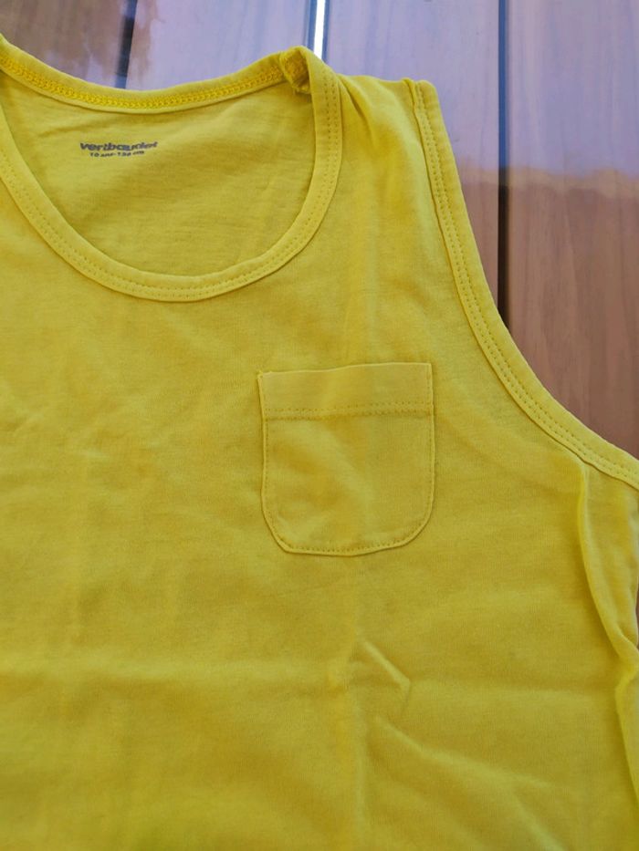 Débardeur jaune, une petite poche sur la poitrine gauche. Taille 10 ans Composition : 100% coton Débardeur en très bon état #nerimagarcon10ans #vertbaudet