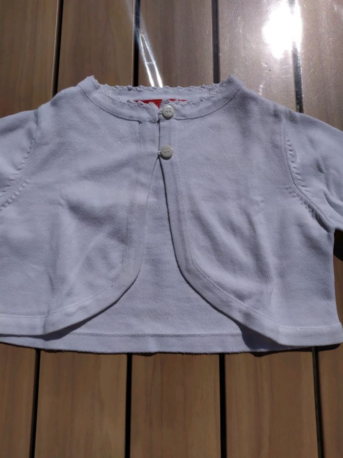 Joli Boléro blanc brodé au niveau du col et au bout des manches. Fermeture par 2 boutons Taille 24 mois. Composition : 100% coton. Boléro en excellent état. #nerimafille2ans #tissaia