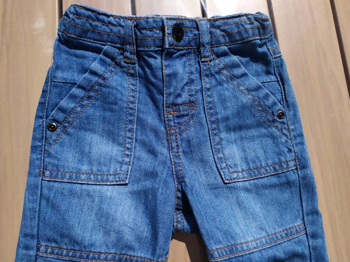2 grandes poches devant + 2 poches arrière qui ferment par bouton pression.