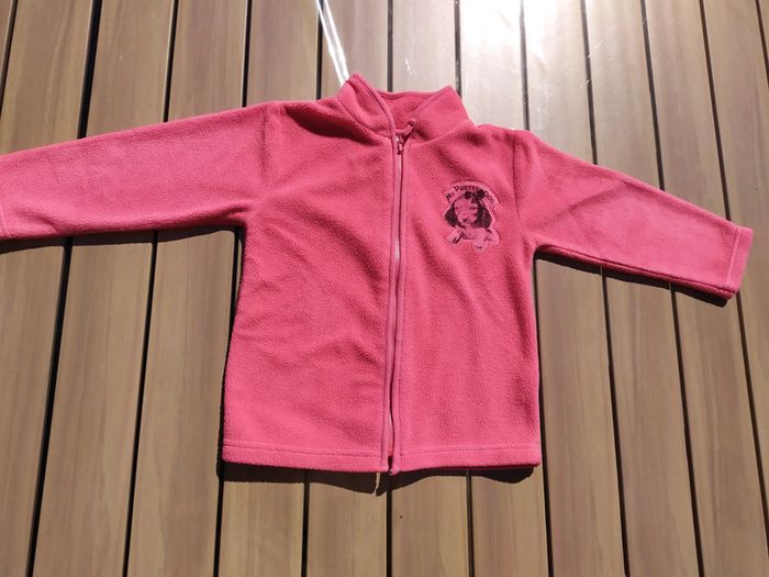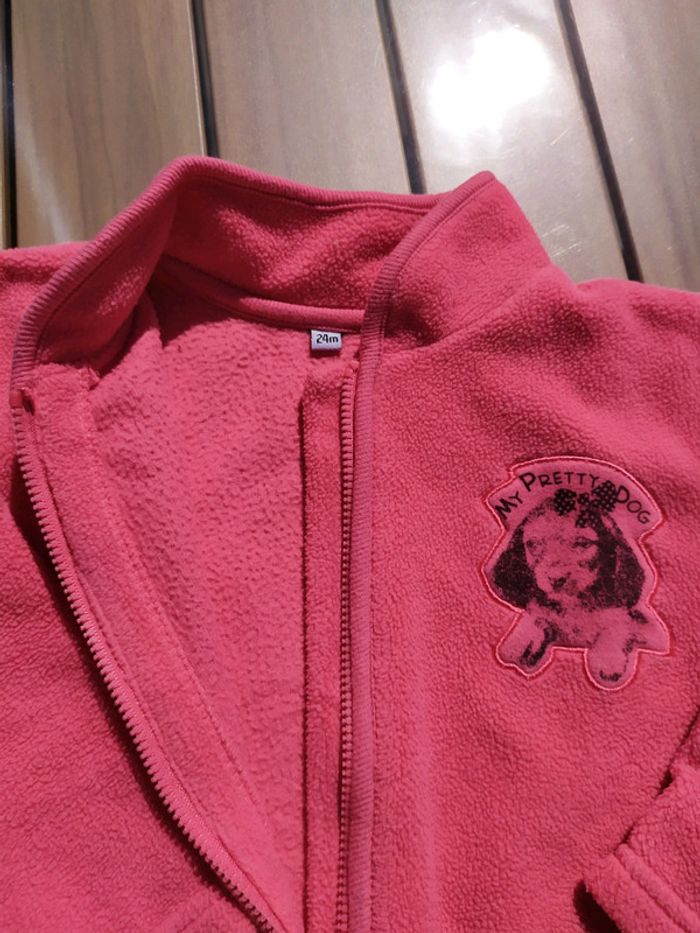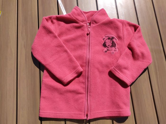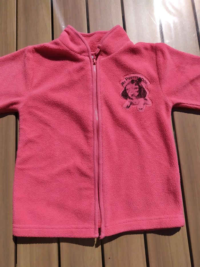 Joli gilet polaire très chaud rose, motif chien sur la poitrine gauche. Col montant, fermeture zippée. Taille 2 ans (86 cm). Composition :100% coton Gilet en très bon état. #nerimafille2ans