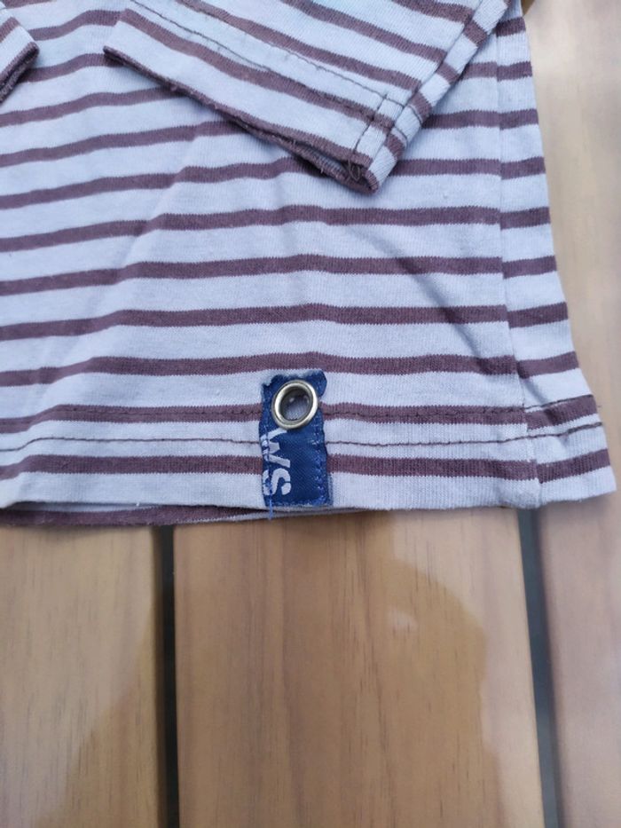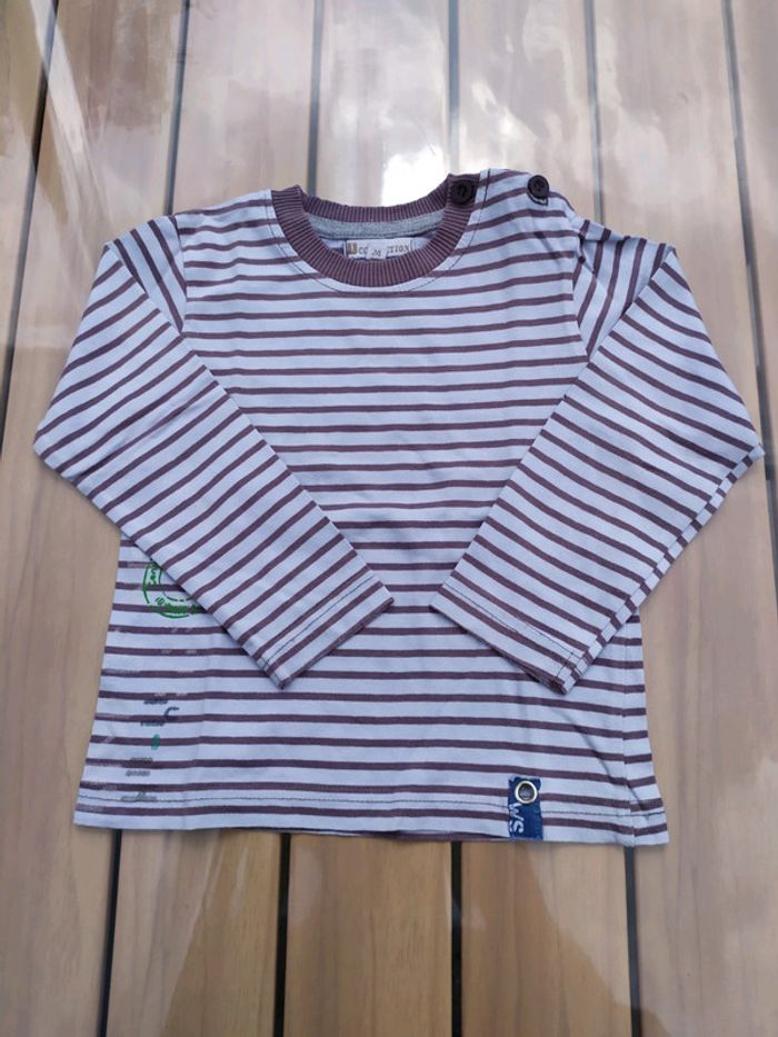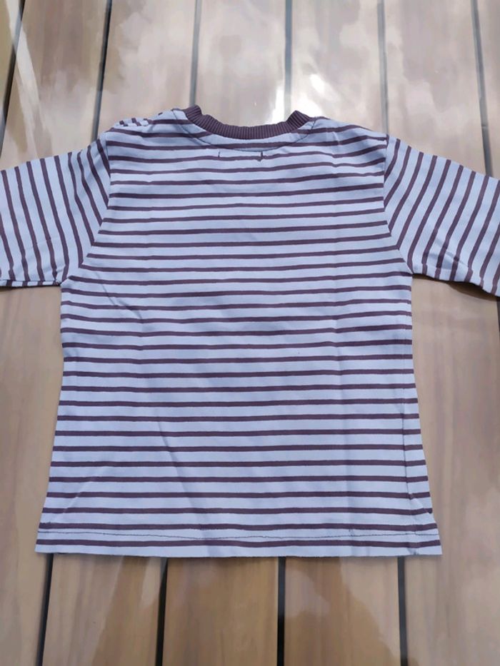 Joli t.shirt à manches longues bleu clair rayé violet, taille 24 mois (86 cm). Ouverture sur l'épaule gauche par boutons. Composition : 100% coton T.shirt en très bon état #nerimafille2ans #ucollection
