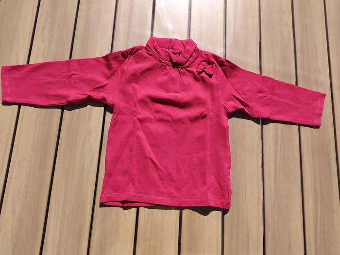 Sous pull rose foncé. Kiabi, taille 18 mois. Noeud cousu au niveau de l'épaule gauche. Ouverture dans le dos par boutons pression. Composition : 96% coton 4% élastane. Neuf, jamais porté. #nerimafille18mois #kiabi