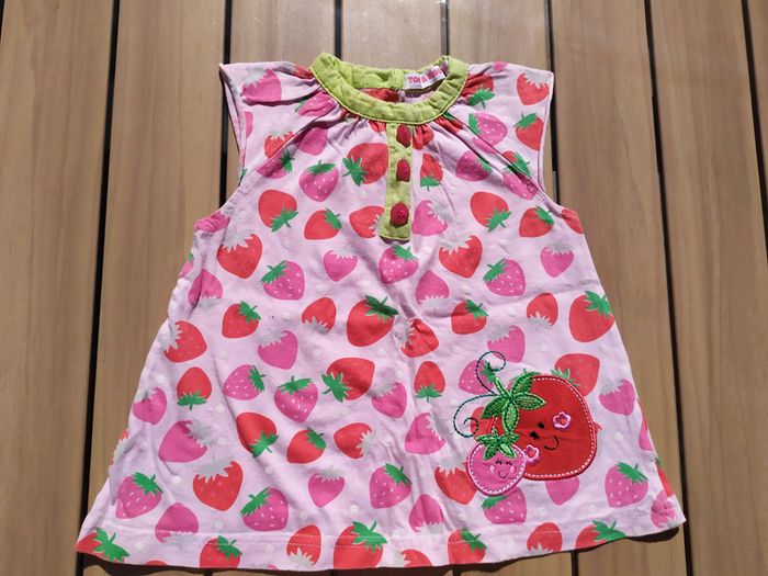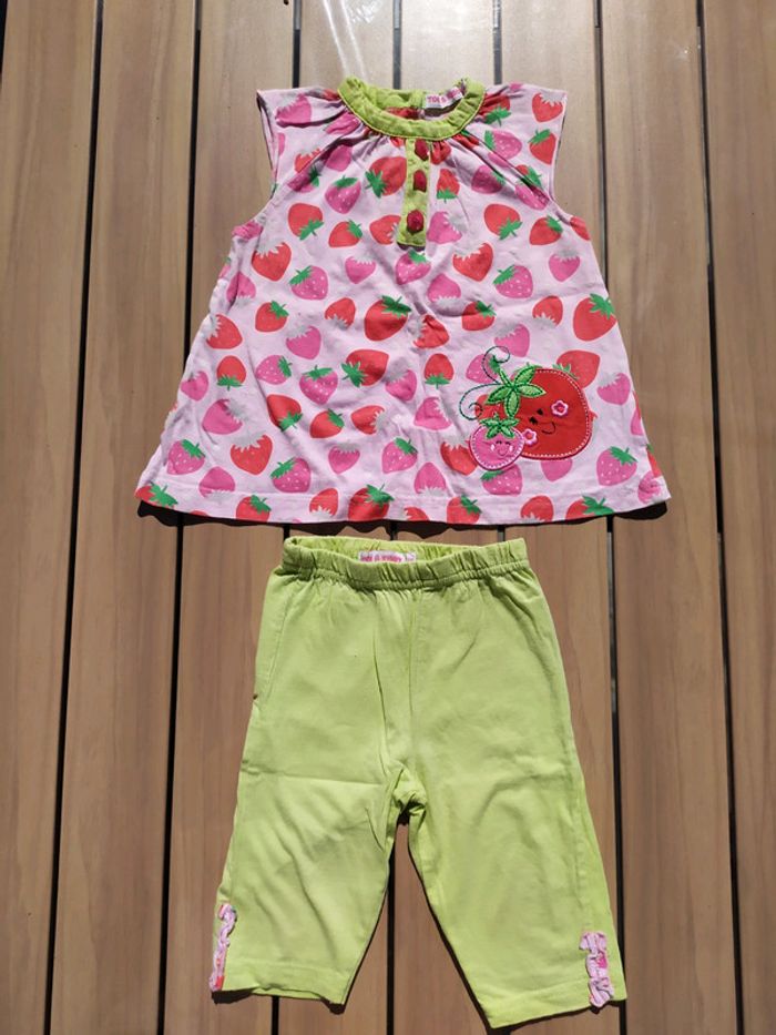 Joli ensemble 2 pièces rose et vert. Tom&Kiddi, taille 18 mois. ✔T. Shirt sans manches rose motifs fraises. 3 boutons cousus devant. Ouverture dans le dos par boutons. Jolie fraise🍓 cousue en bas à gauche. Composition : 100% coton. ✔legging court vert pomme. Petite décoration cousue en bas de chaque jambes. Composition : 100% coton. Ensemble en très bon état. #nerimafille18mois #tomkiddy