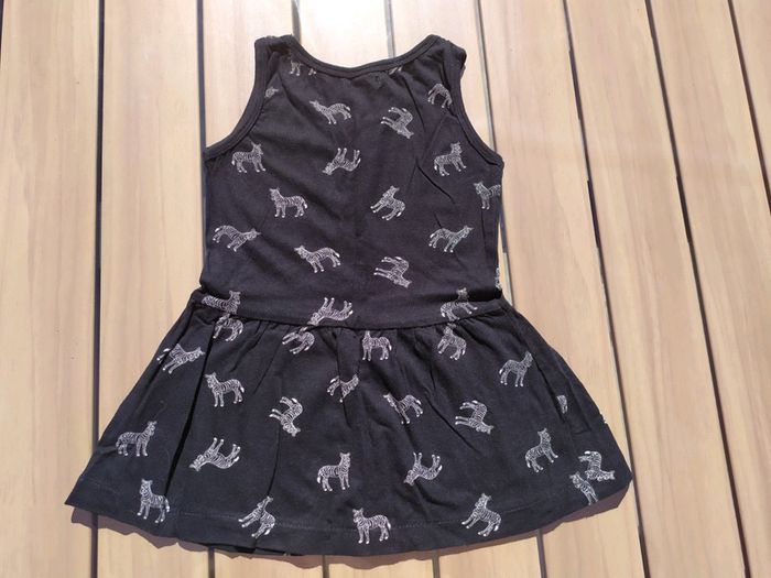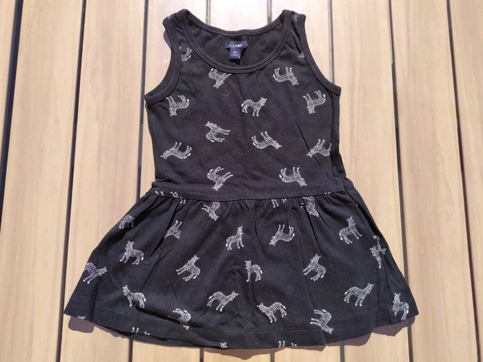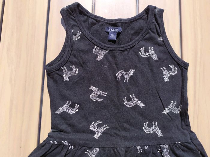 Jolie robe été à bretelles. Noire motifs zèbres. Kiabi, taille 18 mois. Composition : 100% coton. État neuve, portée une fois. #nerimafille18mois #kiabi